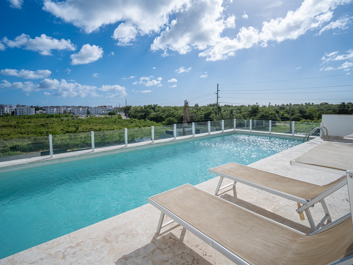 Walk to the beach in 10 minutes, then come back to a poolside retreat with a private balcony. Sleep deep with blackout curtains and a cozy queen bed. Work smoothly on Starlink satellite Wi-Fi at a dedicated desk. Enjoy a walk-in shower, Smart TV, and in-unit washer. Beach Kit included (snorkel gear, cooler, beach bag, towels) for Bayahibe and Saona days.