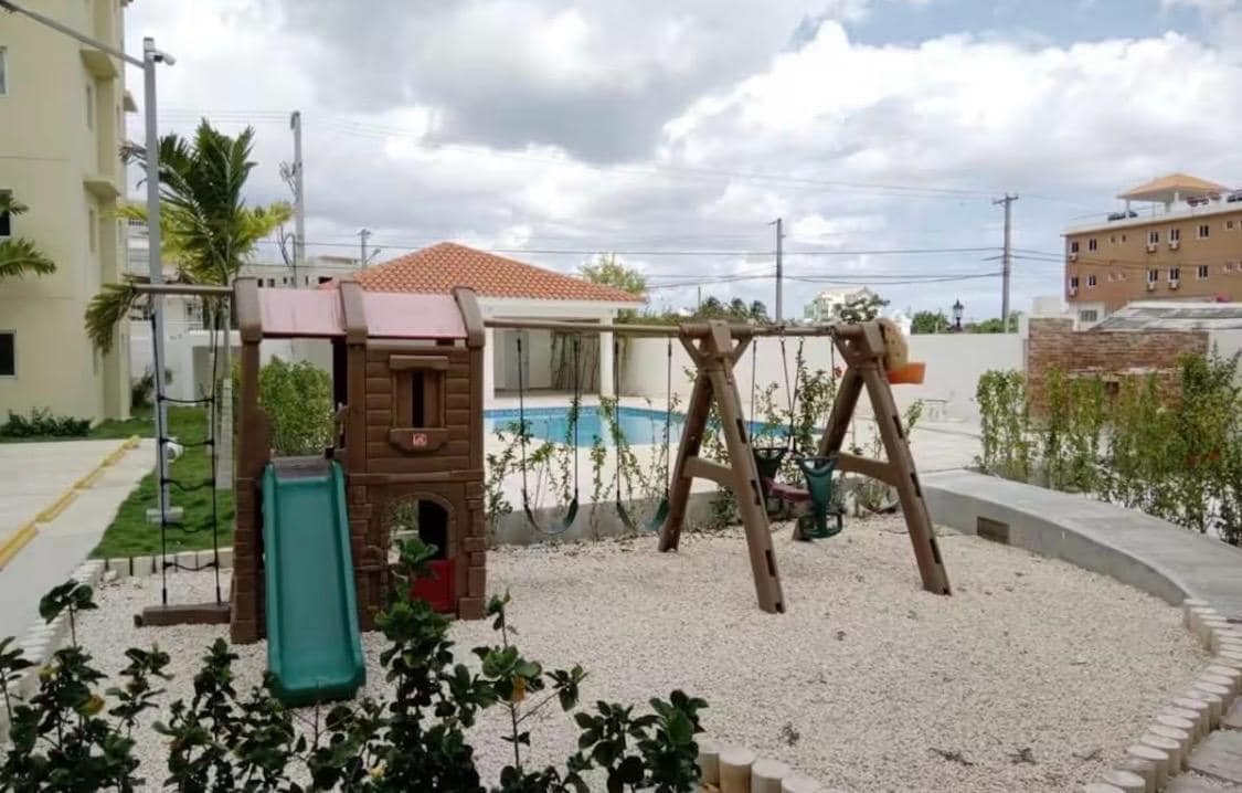 Relájate con toda la familia en este alojamiento donde la tranquilidad se respira. Hay pisina y areas deportivas para ninos, tinda. restorantey bar muy cerca. La playa a poca distansia de 1 min.
