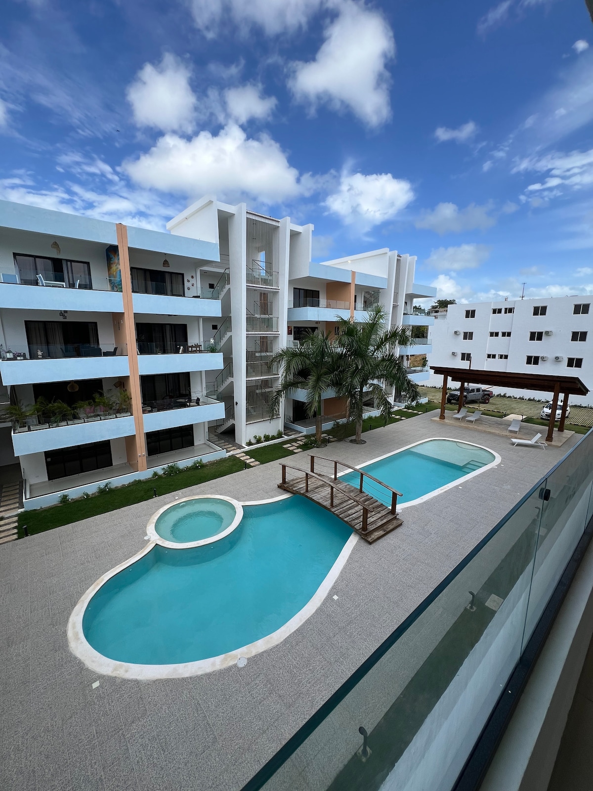 - Dominicus Beach is only an 8-10 minute walk away - Shared Swimming Pool - Shared Hot Tub - 24/7 Security - Control Access to the Building - Free Parking - Fully Equipped Kitchen - 1-minute walk to "Dominicus Village" Shopping Center - Wi-Fi - Washer - Elevator - Shared BBQ - Cozy Full Sofa bed in the Living Room - 3 Smart TV - 30% Day Pass discount at Viva Wyndham Dominicus -View of the Cotubanama National Park -Book Isla Saona on site