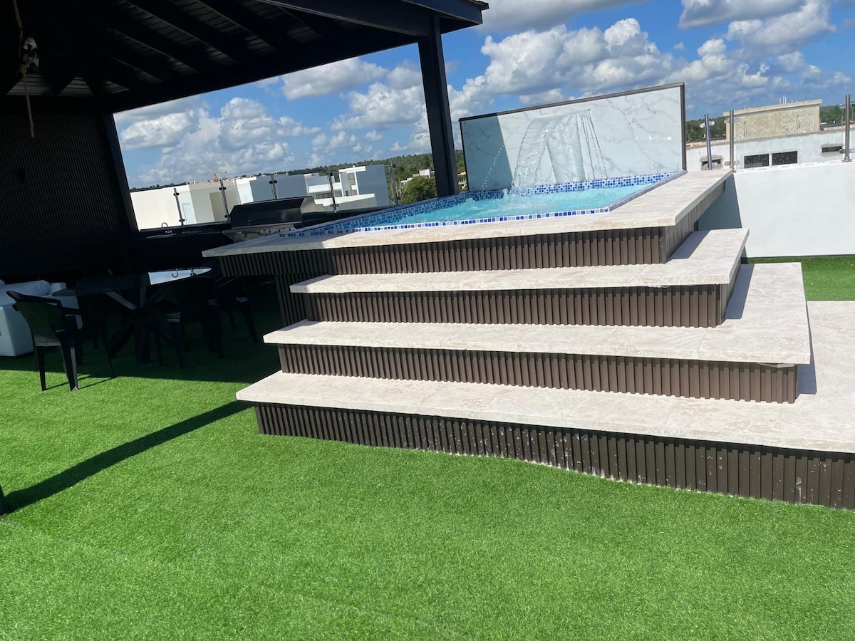 Este espacio con estilo moderno es el lugar perfecto para tu estadía. Un acogedor y equipado Aparta studio con todas las comodidades que buscas para hacer de tu estadía una experiencia única. En nuestras instalaciones tenemos para ti una amplia Terraza, gazebo, picuzzi, y BBQ además de un equipado y moderno gimnasio. A solo 5 minutos de la hermosa playa de bayahibe caminando y 2 minutos en vehículo además contamos con excursión a la isla catalina en catamarán. Un proyecto totalmente nuevo.