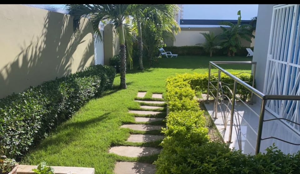 Exquisite luxurious villa. Minutes from Minitas Beach. Everything is new, sophisticated & superior quality. The Villa is one floor, enormous living room to entertain, dine, rest & relax on the rocking chairs or garden bed overlooking the renown Links Golf Course. Enjoy dinner Al Fresco in the outdoor dining table on the deck with trees and string lights. It also has a beautiful Studio, Pool and BBQ. Fully equipped kitchen and laundry. Chambermaid and Cook included. Golf Cart 4p