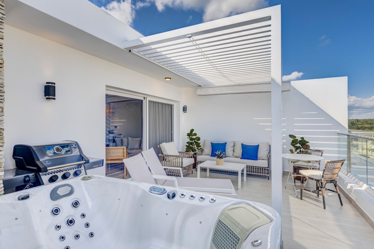 带泳池和私人按摩浴缸的豪华顶层公寓