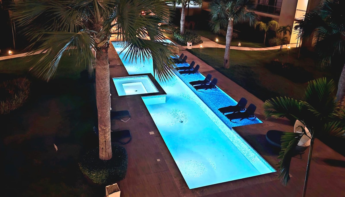 Ven a disfrutar de un merecido descanso, con el ambiente ideal de relajación y hermosos atardeceres en la playa. El apartamento es perfecto para familias con niños que puedan disfrutar la diversión del parque acuático. Remodelado apartamento en un segundo piso, camas de primera calidad, muy cómodas, totalmente equipado y renovado. Internet, TV pantalla plana. Ubicado a pocos metros del restaurante, el bar, playa, piscina, minimarket y la iglesia
