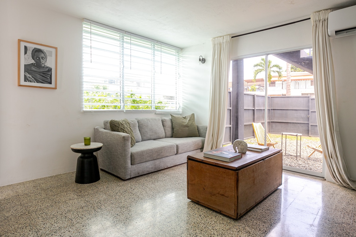 Sits on a quiet mountaintop with stunning views, the perfect sanctuary for conscious families and facilitators seeking rest, grounding, and reconnection. Wake to birdsong, fall asleep to coquí under the moonlight—and all just 20 minutes from the airport. A private pool at the heart of a serene courtyard, thoughtfully designed for indoor-outdoor flow and nourishing energy. This is more than a stay—it’s a space that holds you. Maximum 6 guests No parties No self check-in A/C in bedrooms only