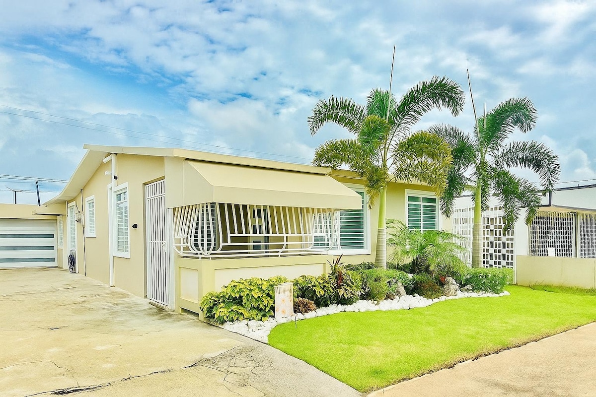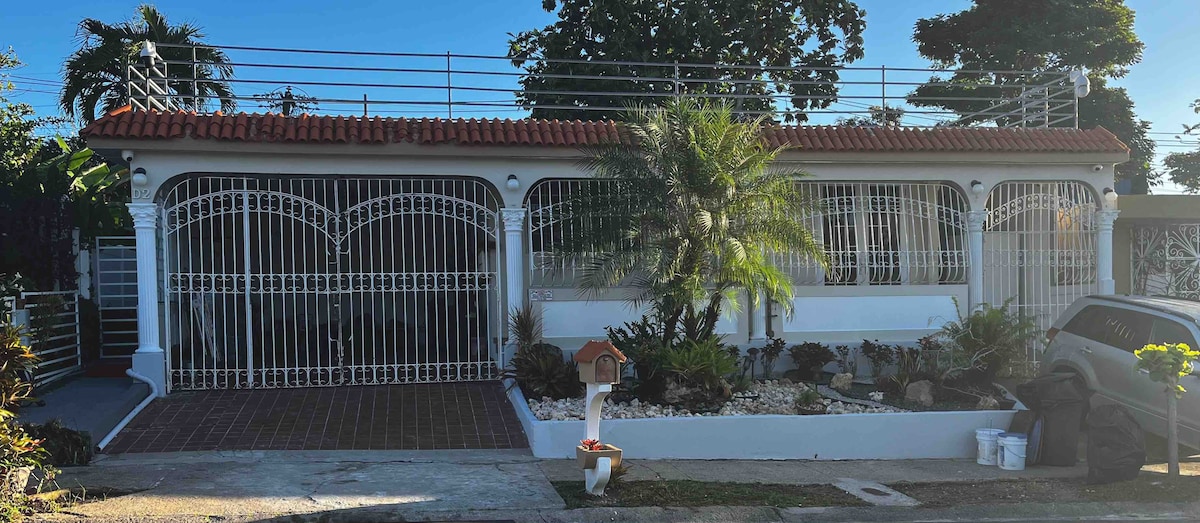 Cozy home fully renovated and furnished. 25 minutes away from the international SJU airport and 3 minutes from the highway 5. Brand new air conditioning units all throughout the house. Totally solar with Tesla battery no worries about not having electricity. Free WiFi and basic cable and smart TV (Netflix and Hulu) Fully equipped kitchen with a 3 compact car garage with electric garage door. Also has 4 beds .Please have a car rental, it’s a most ..