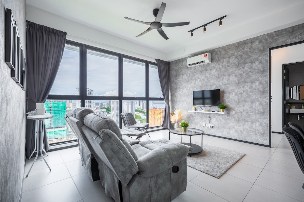 Luxury High-Floor Condo with Seaview | 15 min to Airport Experience comfort and style in this 1,433 sqft high-rise condo with a private balcony offering stunning sea and city views — and even views of airplanes in the distance. Located just 15 minutes from Penang International Airport, 2 minutes from Penang Second Bridge, and 10 minutes from Queensbay Mall. Perfect for business travelers, couples, or families.