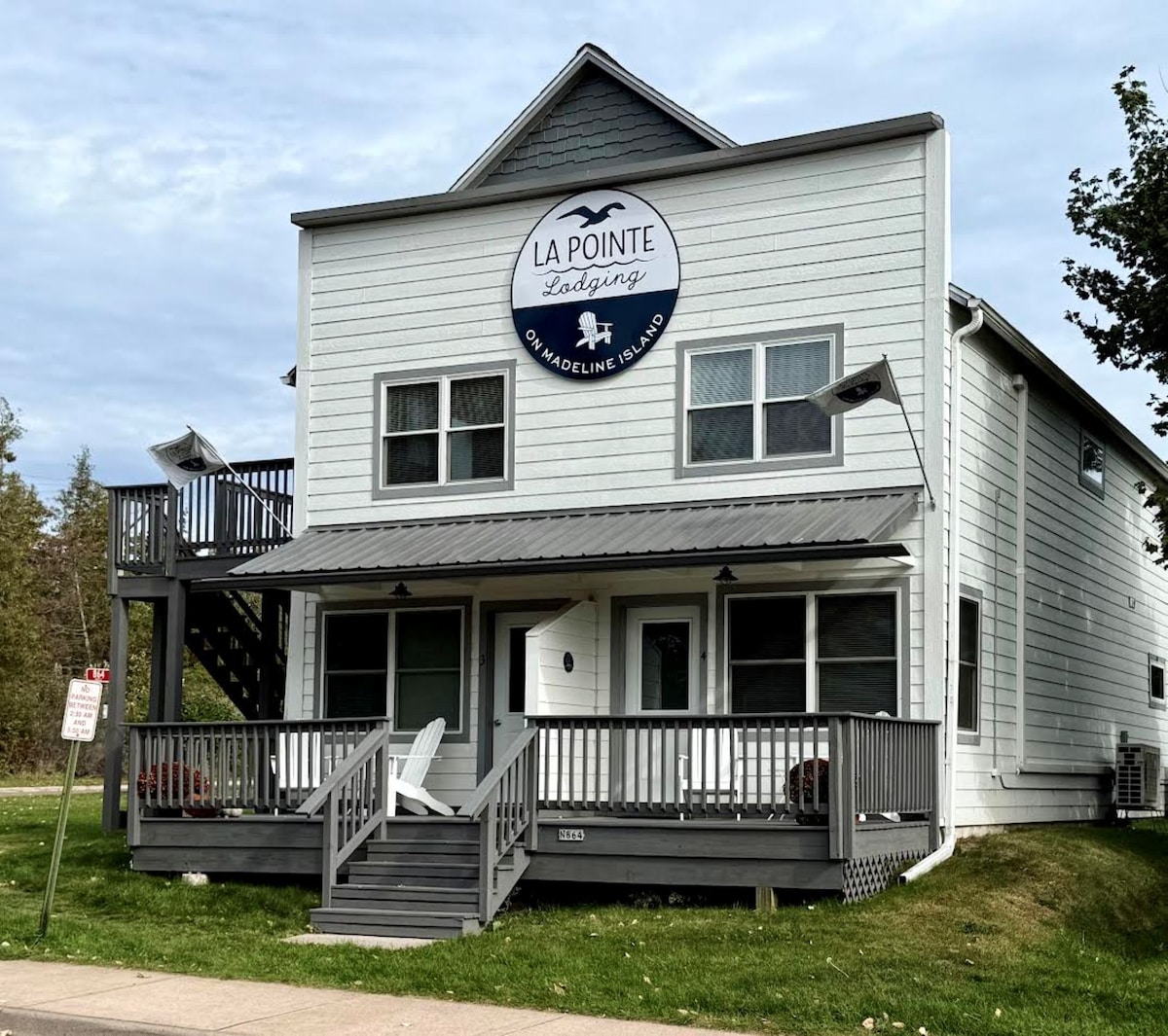 1 bedroom + den with additional queen bed in the heart of Bayfield's historic district, just steps to downtown shops, restaurants, and beaches. Located in the lower level walkout of our duplex, this private + newly remodeled apartment boasts bright spaces, big windows, and comfy furniture for lounging. Take in glimpses of Lake Superior from the open concept living room/kitchen/dining area and enjoy your morning coffee from the covered veranda while enjoying the fresh Lake Superior breezes.