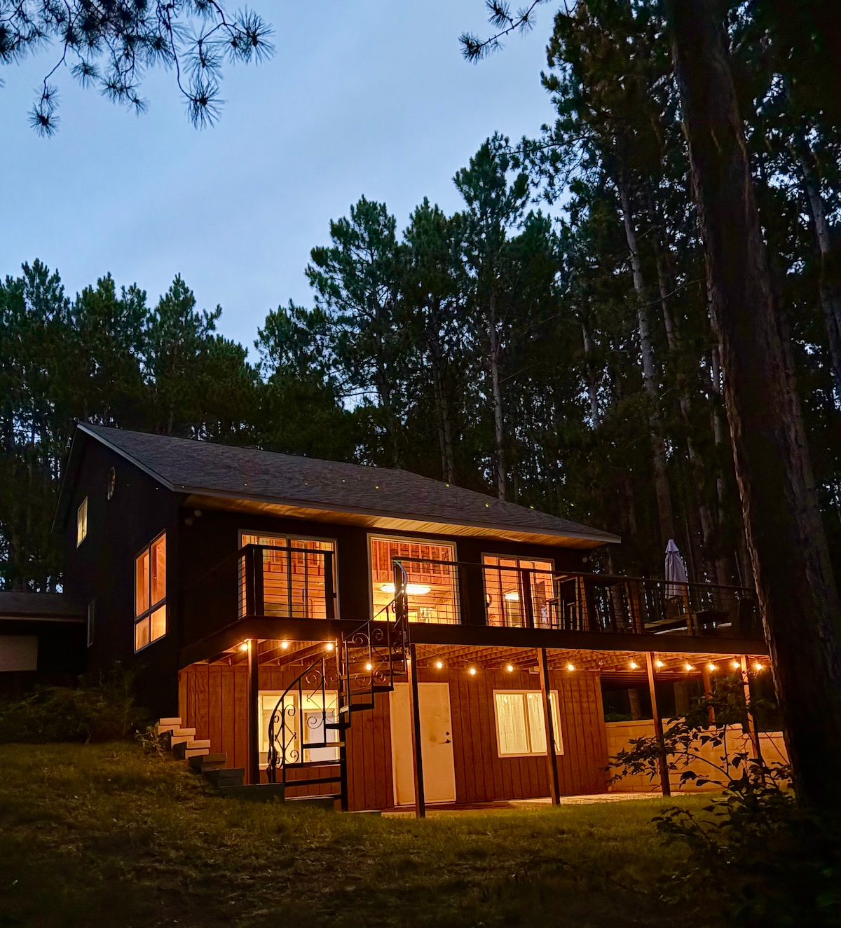 Scandi-style lake house is all set for your private relaxation. Completely painted and refreshed - now open for summer lakeside bookings! Nestled in bucolic, expansive woods and waters just 3 hrs from Twin Cities/4 from Madison. Barnes, Wis., swim off our dock (390 of private water frontage), boat on beautiful Middle Eau Claire Lake, wander the country lanes, relax in modern comfort. Bike the miles of trails. Blazing fast wifi (500+ Mbps). Modern, hygge space. 2.4 acres all yours.