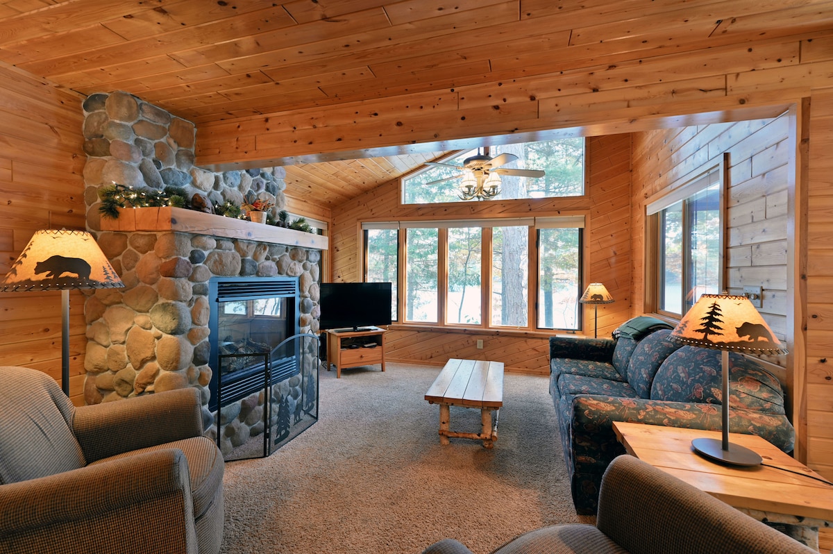 Escape to Island Lake Lodge! Enjoy lake views, a sandy beach, & clear water. Take the canoe, kayaks or paddle boat for a peaceful ride around the lake! Great fishing with public boat access, UTV trails for miles, & great biking! Relax by the firepit, listen to loons, and end the day in the sauna with pine tree views. Don’t forget winter with XC ski and snowmobile trails nearby. Cabin is fully stocked for preparing meals after a day outside. All-season getaway perfect for adventure or stillness.