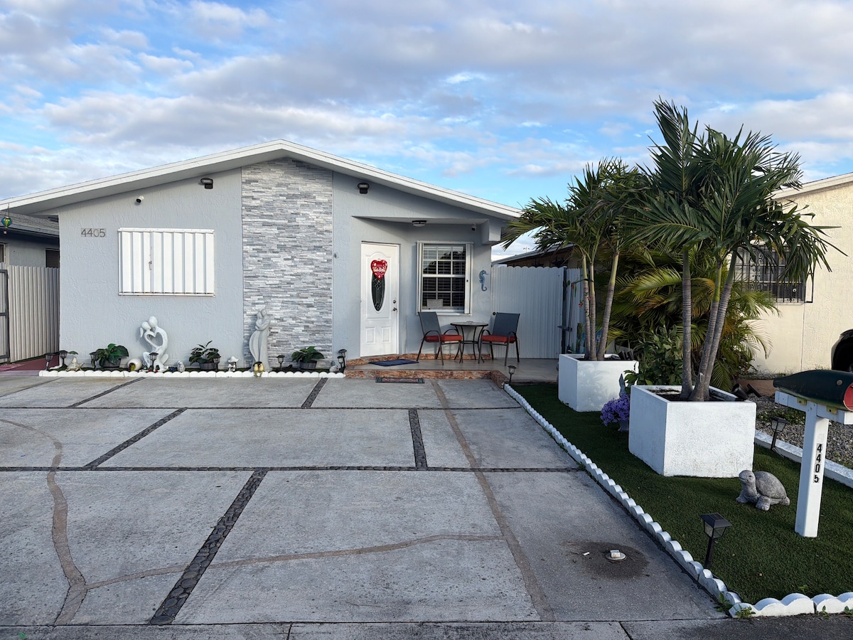 Lakeside Ste, private entrance & patio British themed, clean, 2 rooms with private bathroom, laundry room and private patio overlooking beautiful lake and pool. Fish from the dock. Relax, sunbathe, swim and feel the sun on your skin and the breeze from the lake, watch the jumping fish! Quiet neighbourhood Private entrance! Independent AC Close to I-95, Hard Rock 15 mins Hollywood Bch 15 mins Aventura Mall 10 mins Sunny Isles Bch 15 mins FLL and MIA 15 miles Gulfstream Racetrack 10 miner
