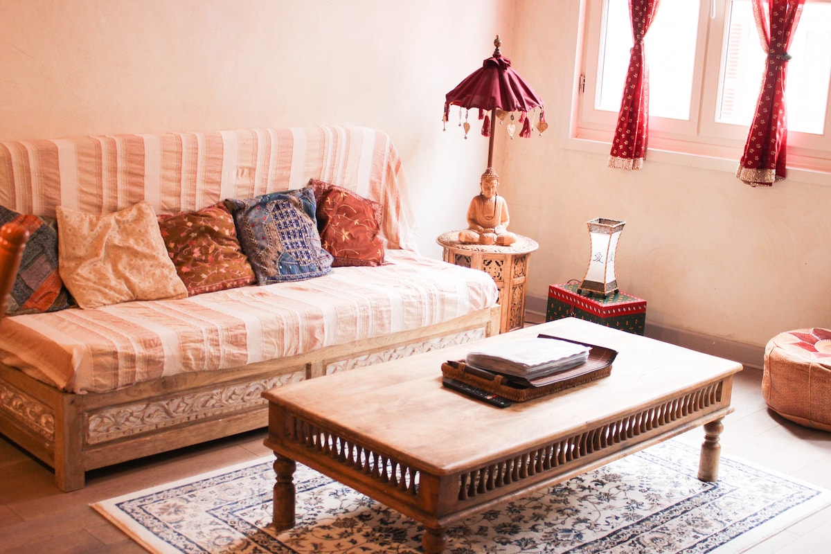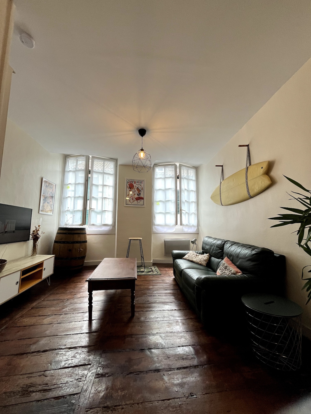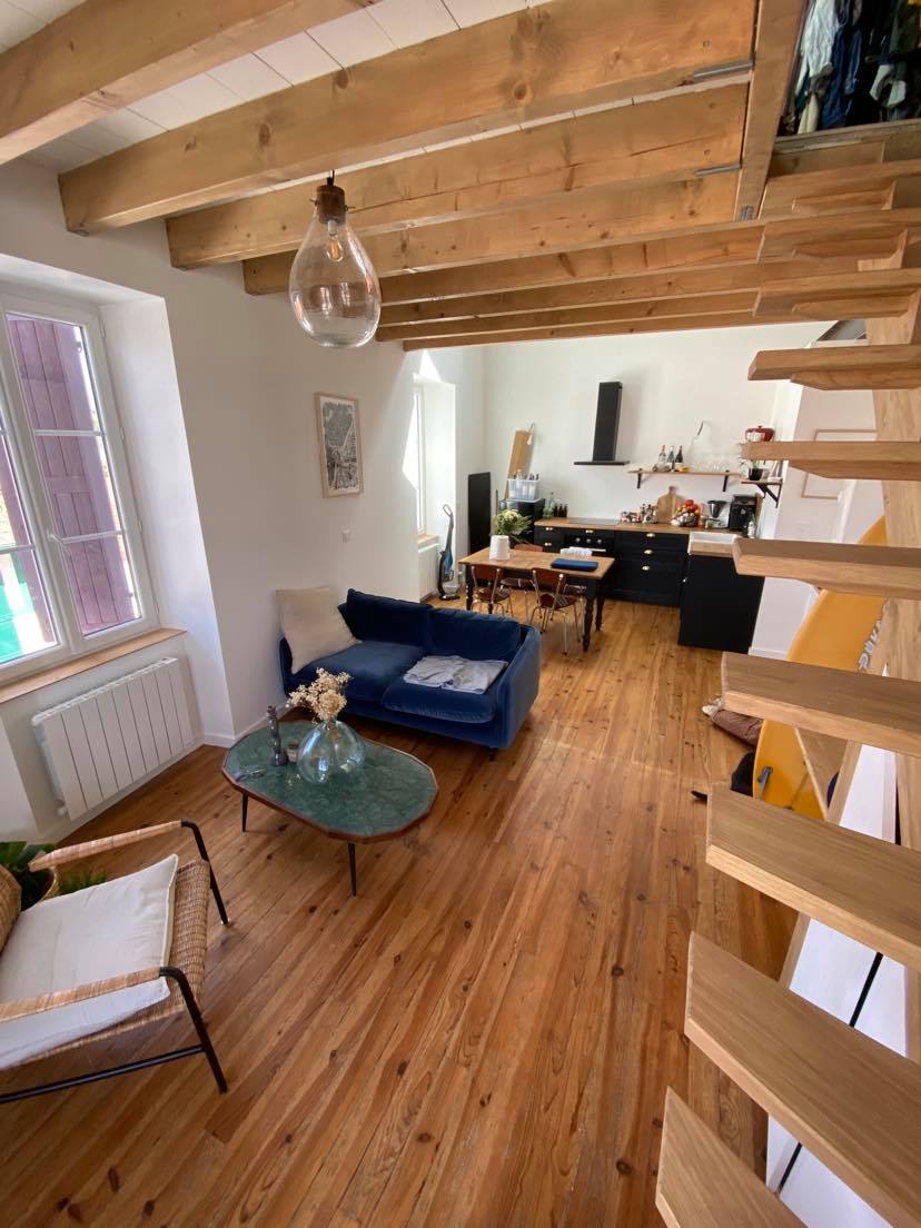Logement de type F2 équipé à neuf et rénové , tout confort et chaleureux. (Appartement privé, c'est aussi mon lieu d'habitation) En hyper centre de Bayonne, à 2 pas de la mairie et de la cathédrale, accès tous commerces et transports en communs à 2 pas. Rue piétonne, de nombreux parkings sont accessibles. Dans un immeuble ancien , calme et rénové tout récemment. Attention au 4eme étage sans ascenseur , bâtiment classé typiquement basque (On ne peut pas tout avoir !)