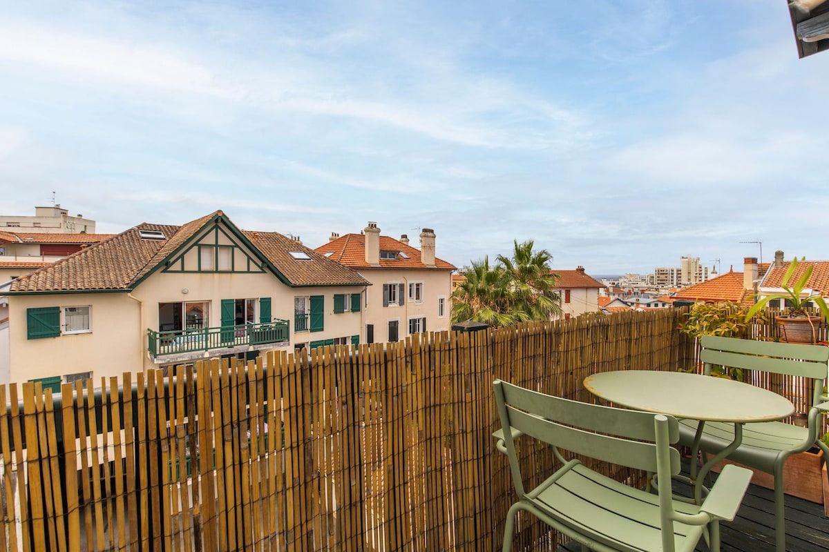 Au 2eme étage d’un petit chalet biarrot, cet appartement traversant, très lumineux, domine la ville et dispose d’une vue sur la mer, au loin. Situé en plein centre, dans une rue paisible de Biarritz, il se compose de 2 chambres spacieuses et d’une belle salle de douche . La cuisine, ouverte sur le salon, dispose de tout l’équipement nécessaire pour cuisiner. L’appartement a été refait à neuf en janvier 2025. La Grande Plage est à 8mn à pied. Très bons commerces de bouche au coin de la rue.