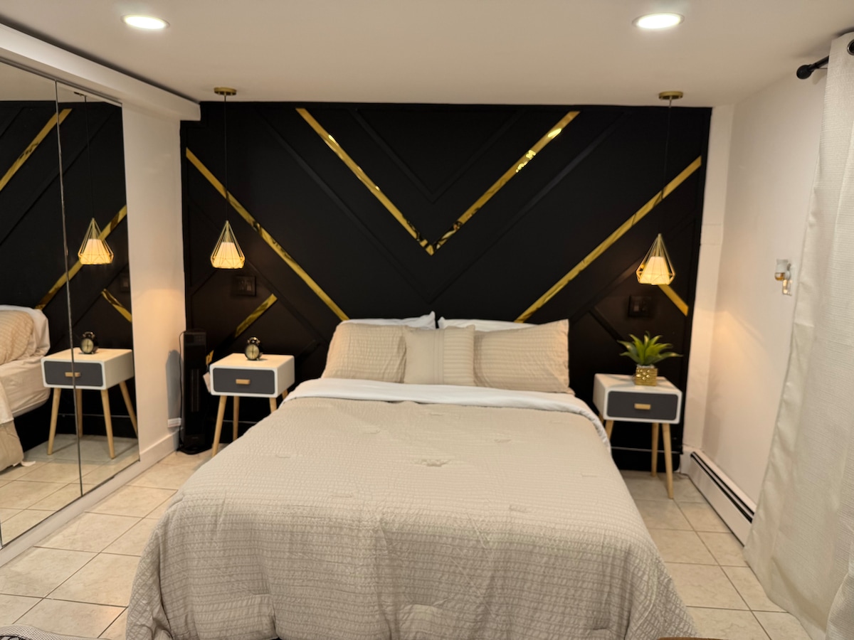 豪华加大双人床1卧室,25分钟到达纽约市,4分钟到达保德信/宾夕法尼亚