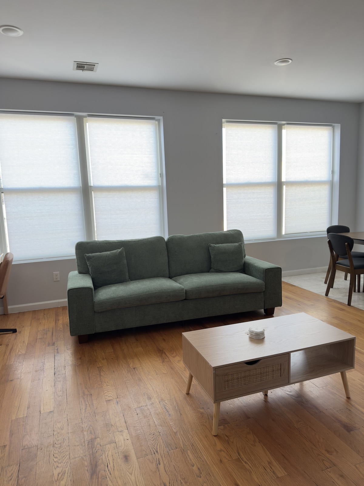 Newly renovated modern 2 bedrooms, 1 bath apartment in Bayonne. Fully equipped kitchen Split air units for cooling and heating Large 50" TV's (1 in the living room, 1 in the master bedroom) Apple TV with Sling TV, Hulu, Disney+, ESPN+, Prime Videos Stand up desk with comfortable office chair Filtered Water Parking for 1 car 2 blocks away from the turnpike entrance/exit 12 minutes to Newark Airport 5 Minutes to Cape Liberty Cruise Terminal Easy access to Manhattan/NYC - Express buses