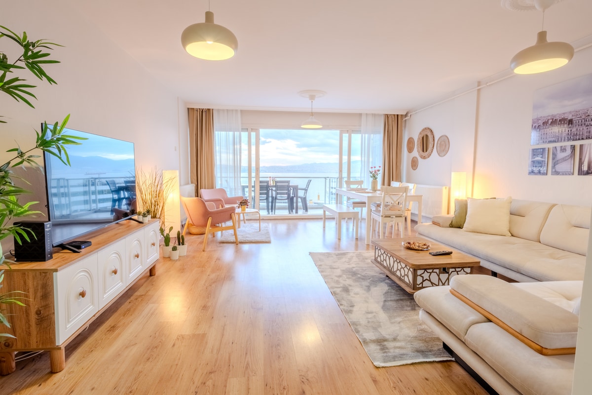 Enjoy city life in our modern apartment, just a 3-minute walk from the Karşıyaka waterfront. ☀️ Sip your morning coffee on the spacious terrace and watch the sunset in the evening. 🚃 The tram, train, and ferry are all within walking distance, and there’s a direct train from the airport. 🏡 With 2 bedrooms, a fully equipped kitchen, fast Wi-Fi, and a cozy living area, you’ll feel right at home. ❗ Please note: The building has no elevator, but a few steps lead to a modern flat with a charming te