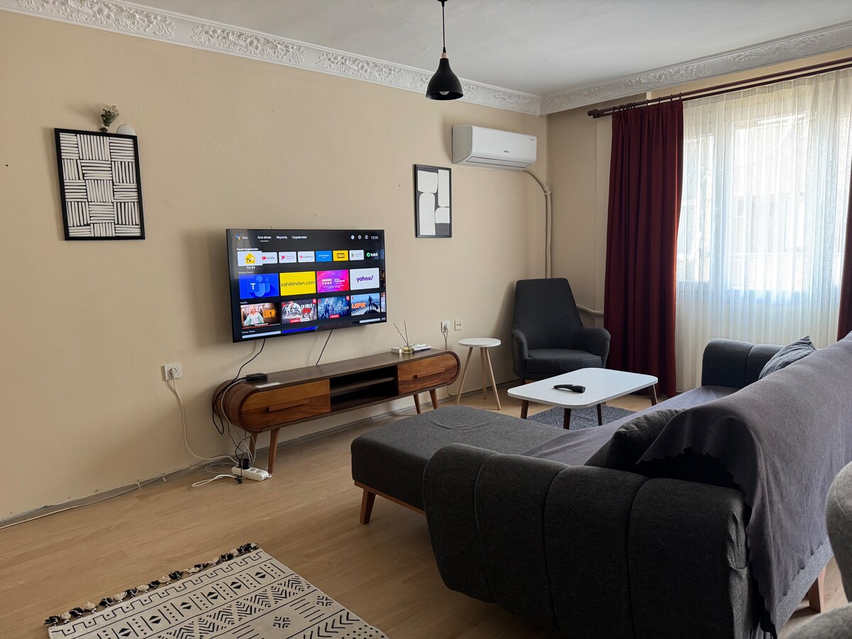 Explore the vibrant streets of Izmir leading to the sea, promising an array of entertainment and unique experiences at every turn. Our centrally located apartment offers easy access to the city's charms, allowing you to create unforgettable memories. With carefully curated interior design, this place offers both comfort and a sense of home. Reserve now and embrace the splendor of Izmir in a homely setting.