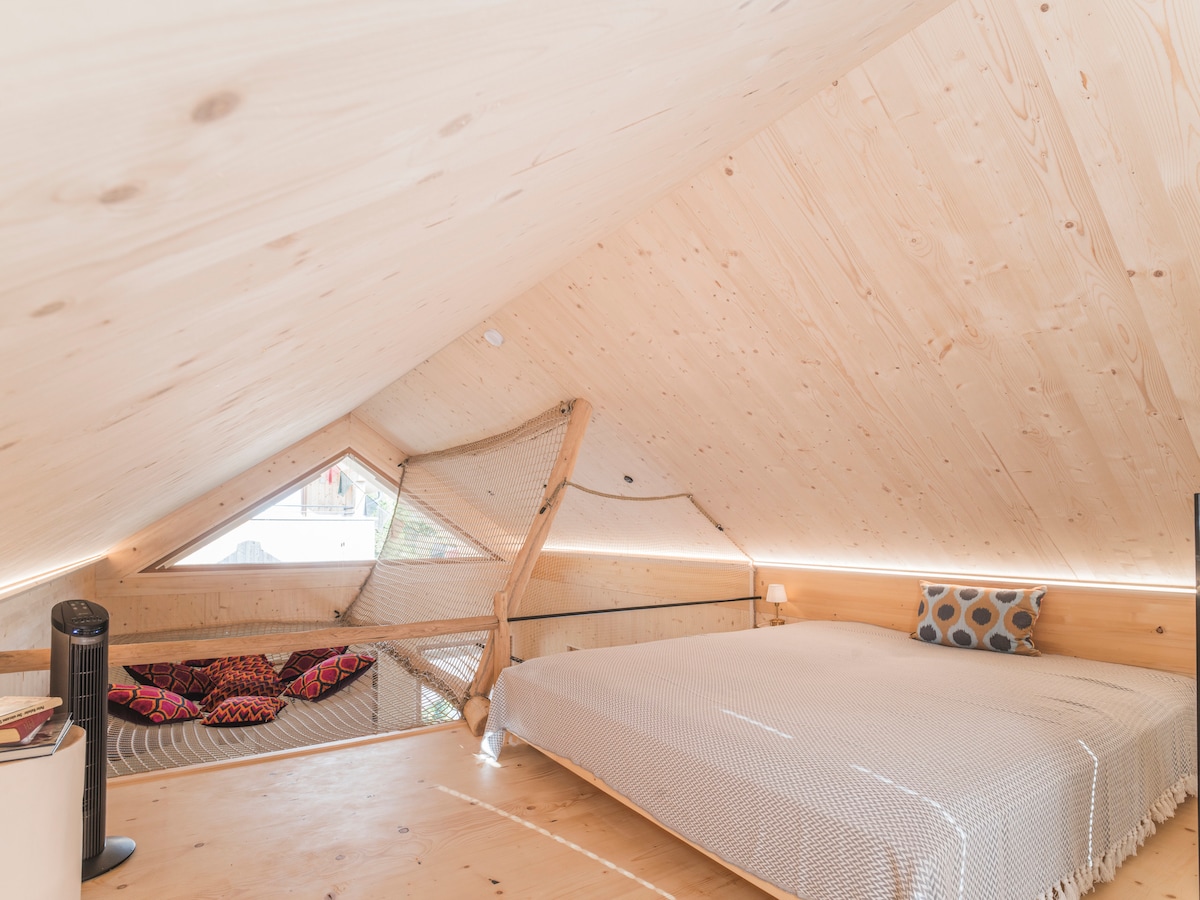 A loft lets everything be open. That's what we're all about: plenty of space, an unobstructed view upwards, and a beautiful view over the meadows of our village. In the loft, you can stretch out, breathe deeply, and gaze at the sky. It's very bright and welcoming, modern, and a great place to live. We've chosen the best: a double bed with a comfortable mattress for a deep sleep; kitchen with all stuff when cooking for your loved one; a leather couch; and warm organic oak floors. Welcome!