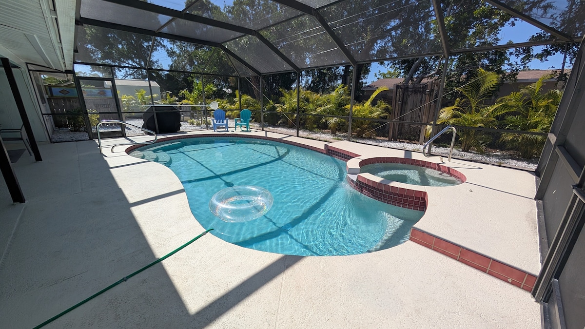 Come find a space away in this 1 bedroom Guest House with a private patio and inflatable hot tub located less than 15 Minutes away from Anna Maria Island Beach. Enjoy all that the area has to offer, and come home to the private ambience of an outdoor fire pit and relaxing hot tub, or play a fun game of corn-hole on the back patio. (The outdoor area is completely enclosed for your exclusive use) The home is a quaint 627 square feet in a safe and friendly neighborhood