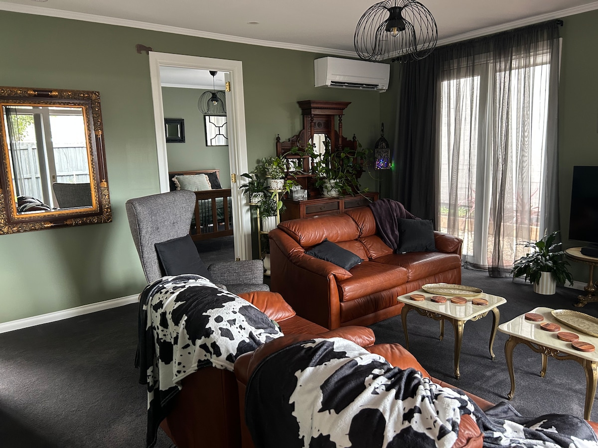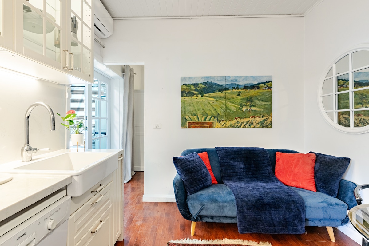 This recently renovated guesthouse is separate to the main house. • Entire guesthouse is yours • Pet friendly • Large open living area • Your own private entrance & driveway It’s private and very quiet, which makes it the perfect retreat for a family or a group of friends. Bedroom 1 has a queen bed, bedroom 2 a double bed and the living room has a large comfortable sofabed. The kitchen is fully equiped & the living room opens up to a large al fresco area - perfect for entertaining.