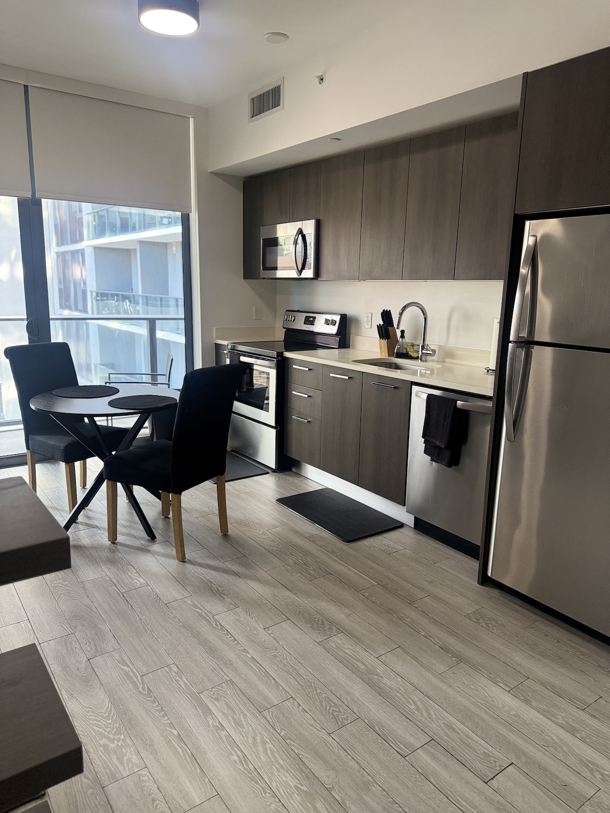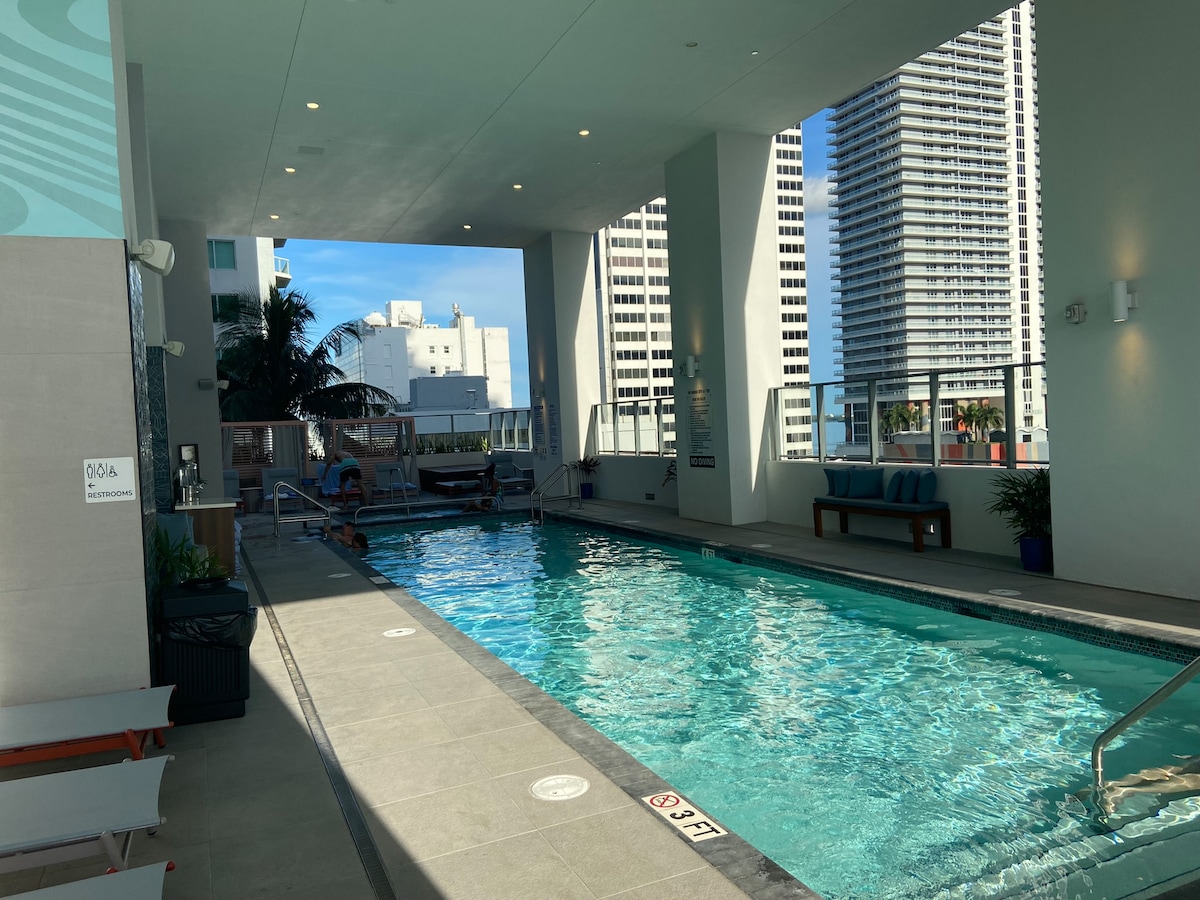 Modern Miami Studio with stunning views! Enjoy a cozy space with a King Size Bed, Smart TV, fast WiFi, and a private balcony. Perfect for relaxing after exploring the beach, nightlife, and top dining spots nearby. Located across the street from Bayside Marketplace Waterfront. Includes a kitchenette, central AC, and secure building access. Ideal for solo travelers or couples seeking comfort and style in the heart of Miami. Book your escape today 🌴