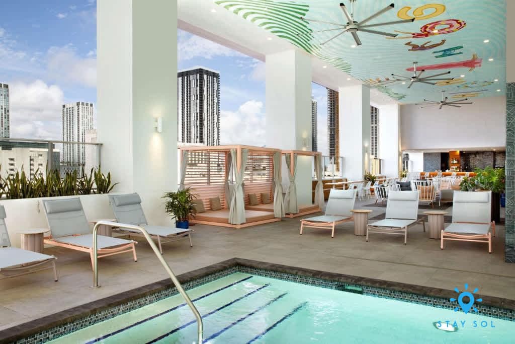 Enjoy a stylish experience at this centrally condo at the well known hotel YotelPad. Enjoy walking in downtown, steps from restaurants. The building offers Pool, Gym, Hot tub, Restaurant, lots of workspaces. The studio has kitchen, washing, dryer, Fridge, Coffee machine, oven, dishwasher, Wi-fi, Smart TV Wholefoods/Publix: 0,5 miles CVS & Walgreens same block FTX Arena: 1 block Brickell: 1 mi Wynwood 2,5 mi Design Centre: 4 mi Miami Beach: 4,8 mi Coconut Grove: 5 mi Port Miami: 1.6 mi