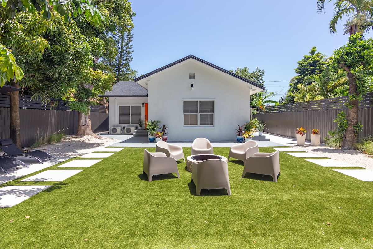 Located by the Miami Design District and curated to complement. This is a fully licensed and professionally managed, hotel-style property that puts cleanliness first. This property includes 2 villas in one building. Each villa has 2 BR & 1 BA, and a private entrance. You are renting the entire property 4Bedrooms & 2Bath + backyard - 1 min. Design District - 5 min. Wynwood - 9 min. Brickell - 10 min. Miami Cruise port - 11 min. MIA airport - 14 min. to South Beach (Miami Traffic varies by time)