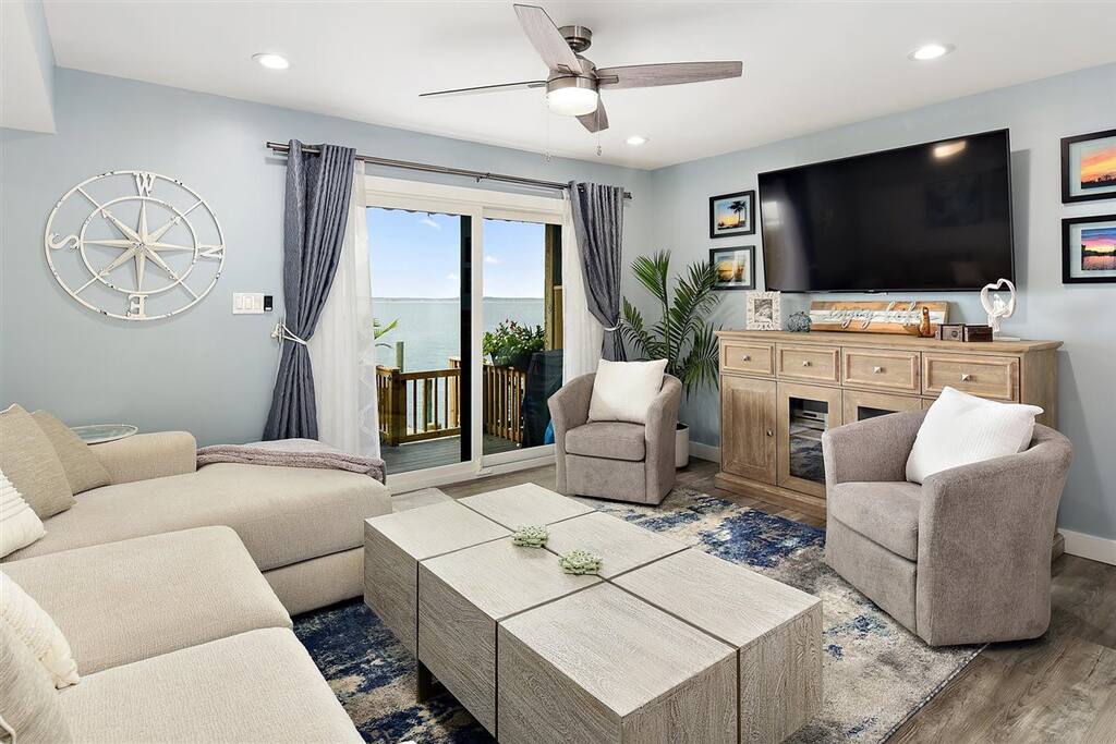 After relaxing at the beach (just a 7 min walk away), unwind on our deck "watchin' the tide rollin' away!" Get the best of the bay & the beach with this dog-friendly hidden gem! Imagine evenings enjoying the bay breeze as you crack crabs on the deck! Relax inside our open-concept great room that allows everyone to be together. Fish on our private dock or use it for your own boat or jet-ski to dock there. Witness spectacular sunsets with our Kayaks. Enjoy a well lit, private work space to virtual work w/ high speed internet! A new wood CRIB now in master suite for restful sleep! The pools and tennis/pickleball courts are only a few blocks away for your enjoyment! Plus, a truly unique OUTDOOR MOVIE EXPERIENCE for all our guests to make for the best Vacay EVER!