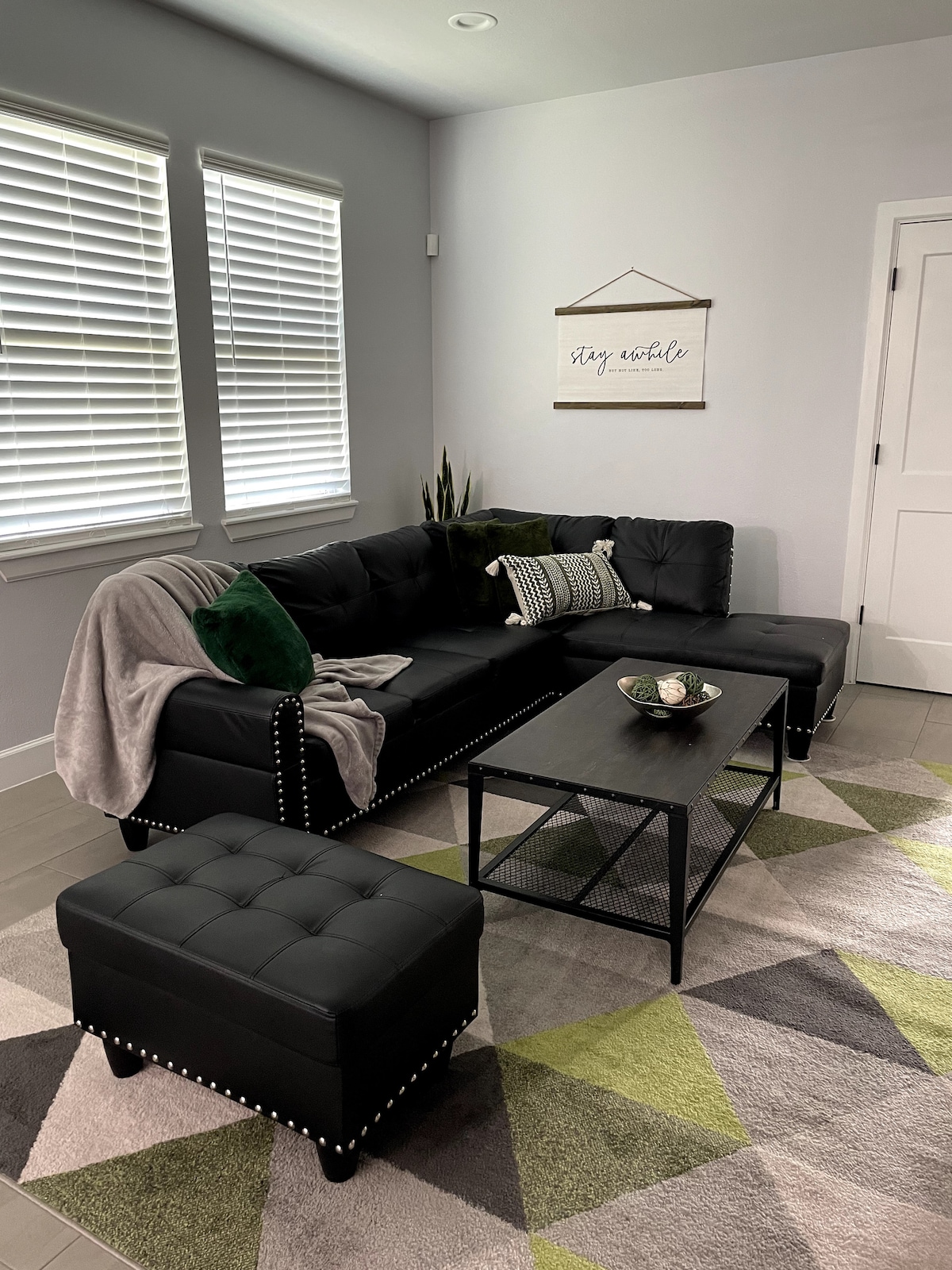 Check-in starting 4p Early check-in options: 3p $10 2p $15 1p $20 12p $25 Check-out by 11a Late check-out options: 12p $10 1p $15 2p $20 3p $25 Please set your guest count for correct pricing. PRIVATE ENTRY Pictures 2-9 - bedroom w/ Cali King sized bed, 65” smart TV, bathroom w/ 2 vanities, soaking tub w/ jacuzzi jets, walk-in shower, large walk-in closet (doubles as small room w/ twin bed - ask), are all privately your area. Other pics show common area