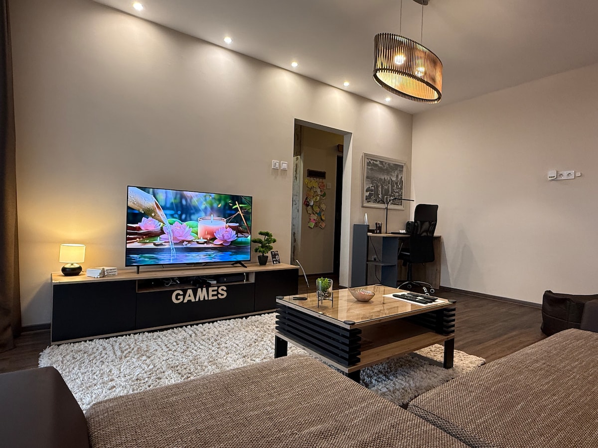 Fedezze fel ezt az elegáns, modern belépőkódos Apartmant Nagykanizsán a város csendes keleti részén, közel a sportesemények és koncertek központjául szolgáló Kanizsa Arénához. 2024-ben nyitottunk, így garantáljuk, hogy tetszeni fog az új és modern stílusban berendezett lakás. Az egész család jól fogja érezni magát ebben a lakásban. A városban található, mégis a nyüzsgő belvárostól távolabb, csendes helyen, bevásárlóközpontok közelében. A kényelem és a tisztaság számunkra a legfontosabb!
