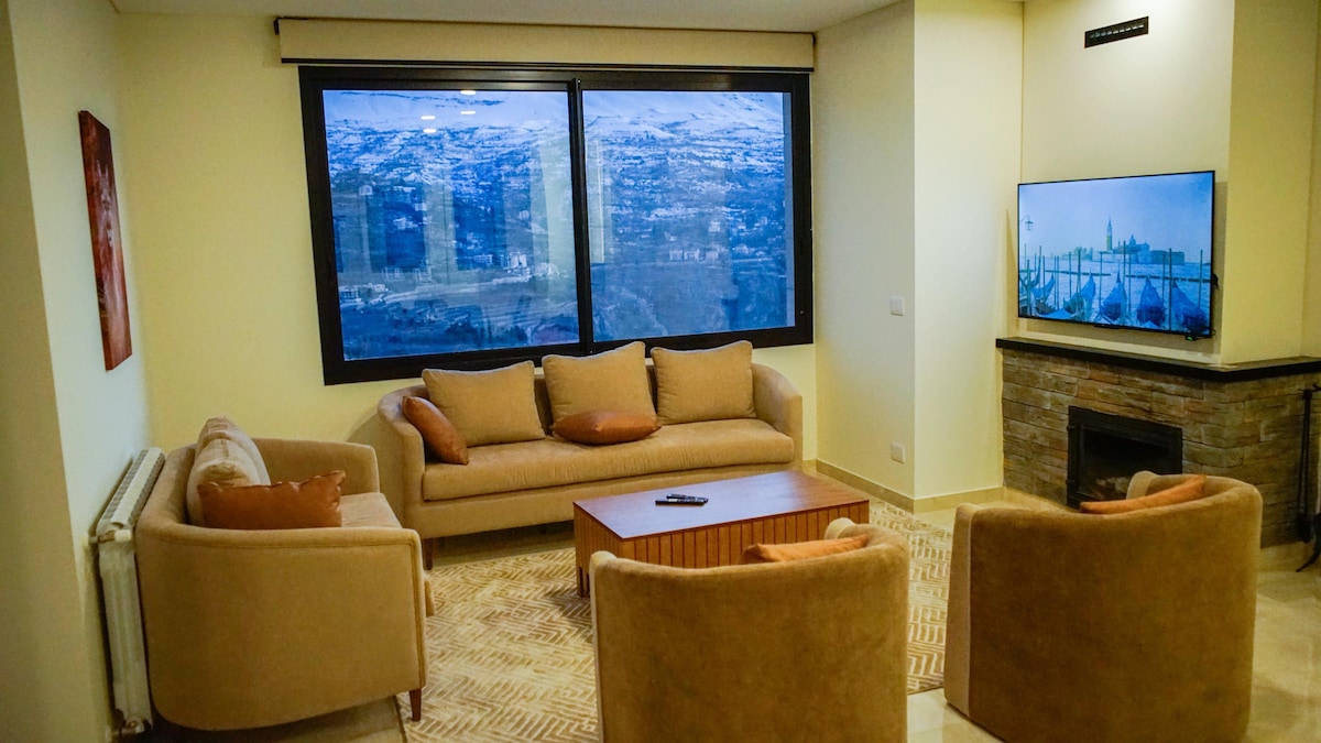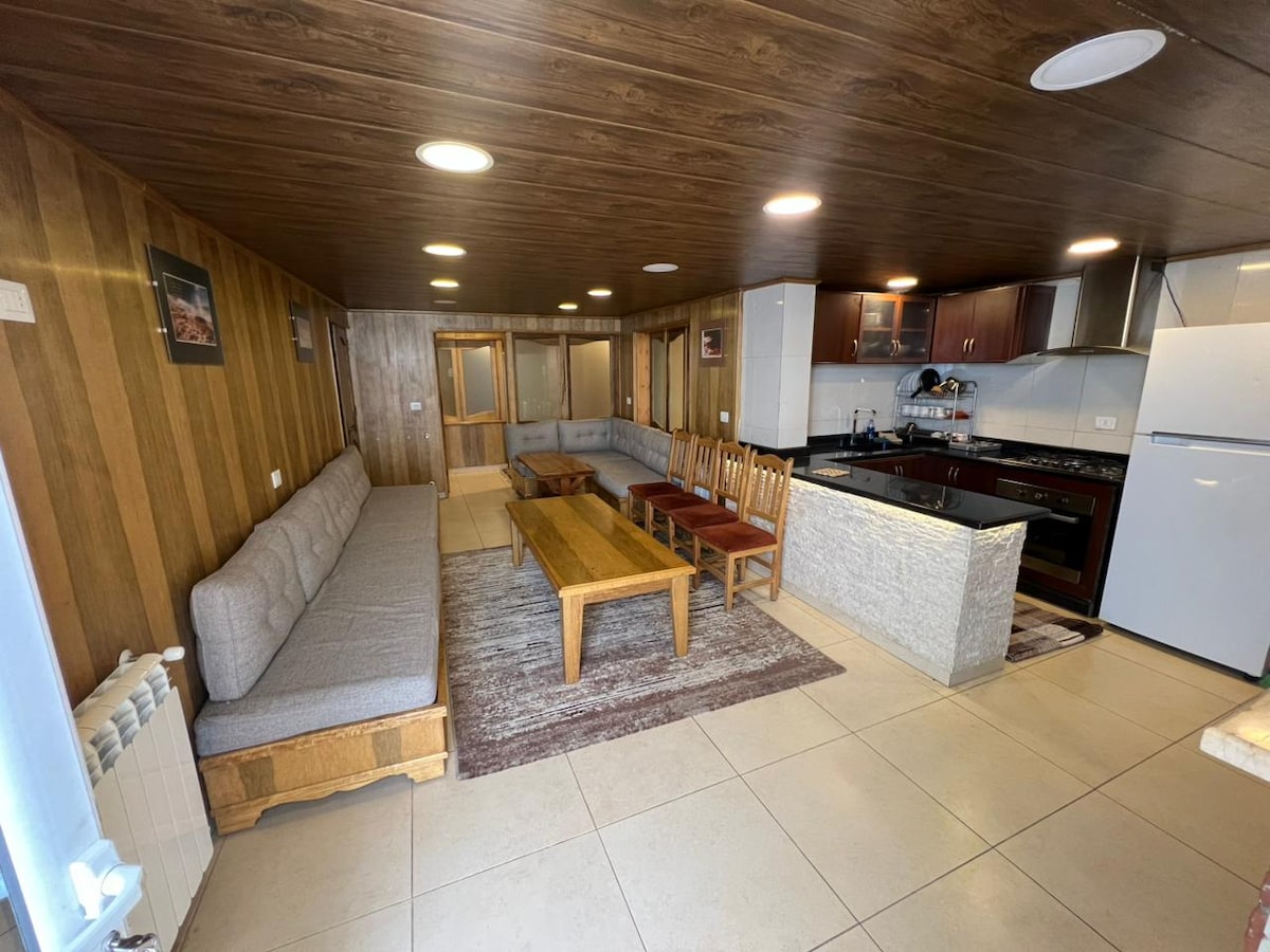 Renovated 2 bedroom and 2 bathroom condo nestled in Ehden Country Club overlooking the Qadisha Valley. This unique place has a style all on its own. Located in the beautiful town of Ehden, this condo is the perfect mountain getaway for a summer or winter vacation. During summer, enjoy the breathtaking scenery and vibrant nightlife of Ehden. During winters, take in the amazing snow scenery and head to the famous Cedars Ski Resort only 25 minutes away by car. Breakfast: 15$ per person (optional)