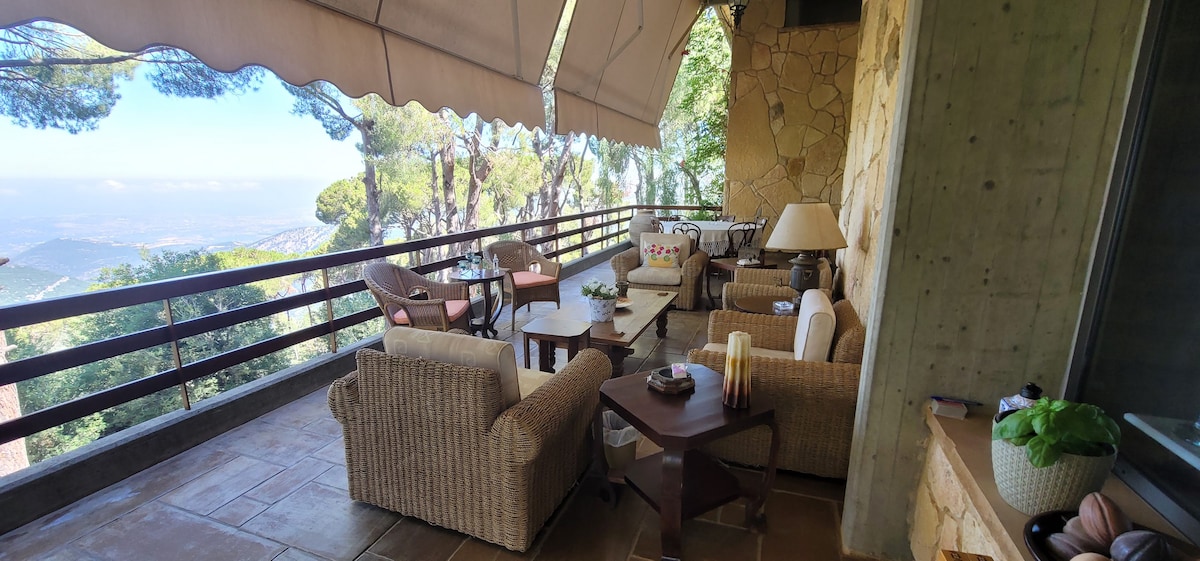 Three-story Alpine modern Villa with plenty of green space and vast gardens to enjoy a relaxing one-of-a-kind stay. Ideal mountain getaway equipped with all you need. Perfect for spending time away with firends and family. Magnificent view on the Qadisha Valley and the Cedars mountain. 10 minutes drive to Ski Slopes and to the Qadisha Grotto. Close to Touristic and Cultural sites among which Gibran Khalil Gibran's museum and house.
