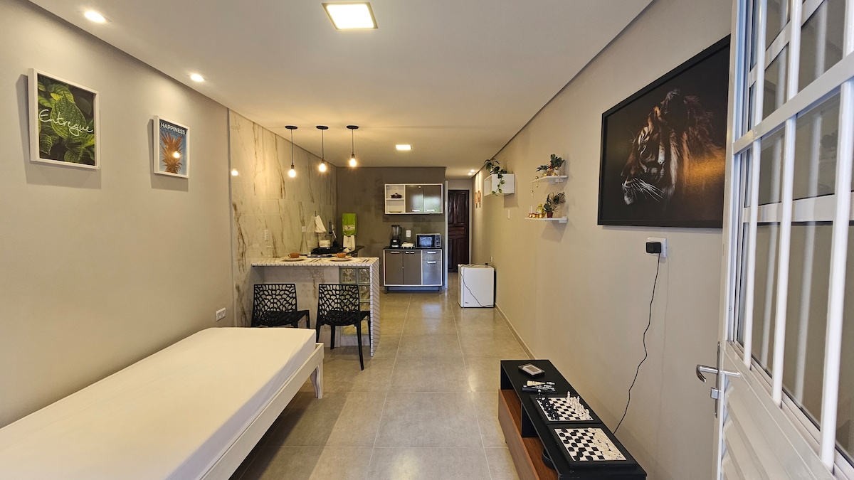 O Porto Stúdio Home é um espaço pensado para você curtir o melhor no coração de Porto de Galinhas/PE. Estamos localizados na Praça Três à 150m da Vila de Porto e a 250m das piscinas naturais. Você estará a poucos passos de tudo que o centro de Porto tem a oferecer. Siga nosso insta @portohome_alugueis Possuímos uma decoração moderna e aconchegante; cada detalhe pensando na sua melhor estadia. Dispomos de quarto, sala de estar.