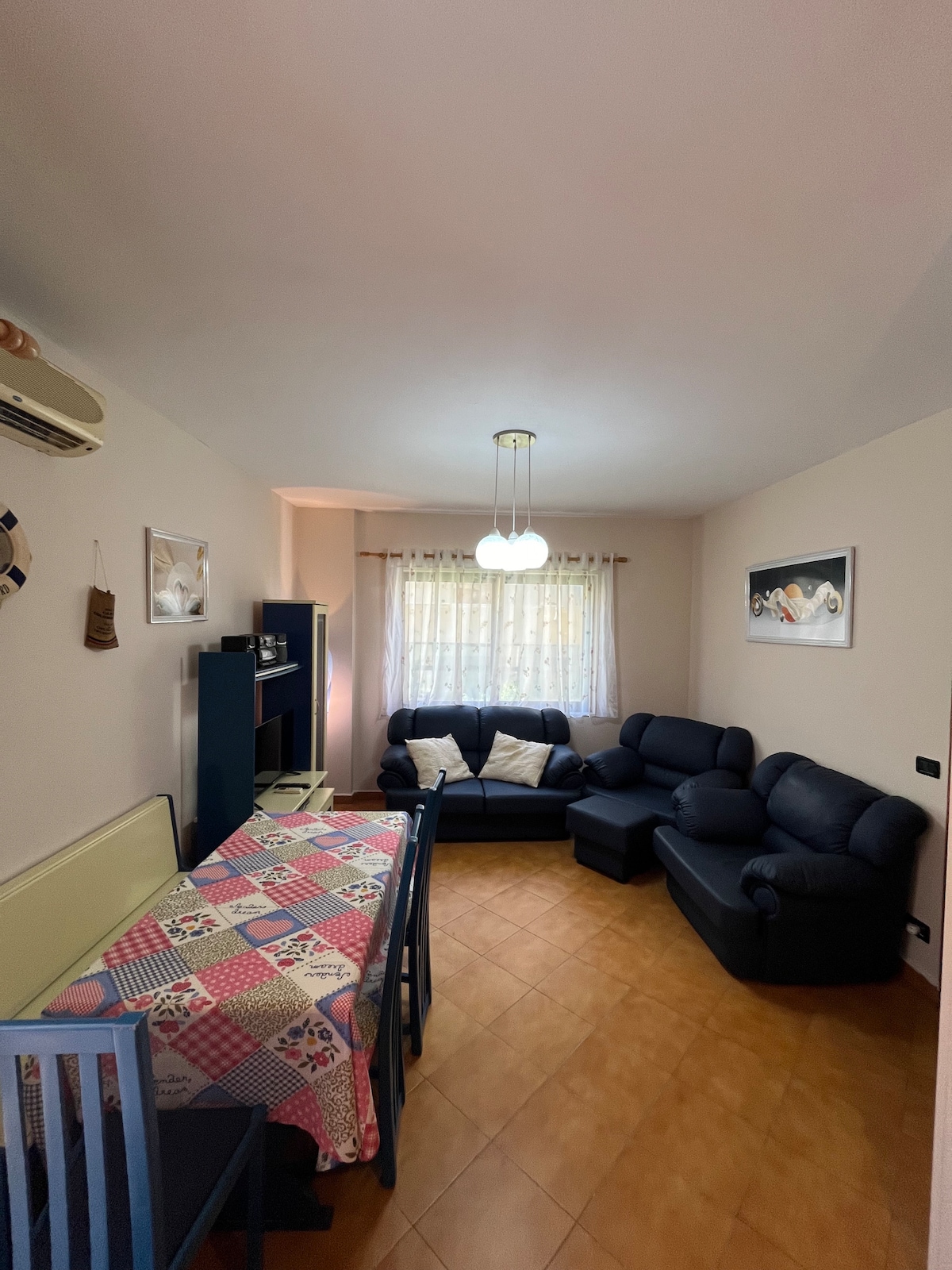 Enjoy a spacious and elegant 95m² family apartment in Golem, just minutes from the beach. Designed for comfort with 2 bathrooms, 3 AC units, smart TV, dehumidifier, and a cozy fireplace. The master bedroom features an in-room bathtub. A fully equipped kitchen with indoor grill and a private yard with outdoor shower make it ideal for families seeking style, space, and coastal relaxation.