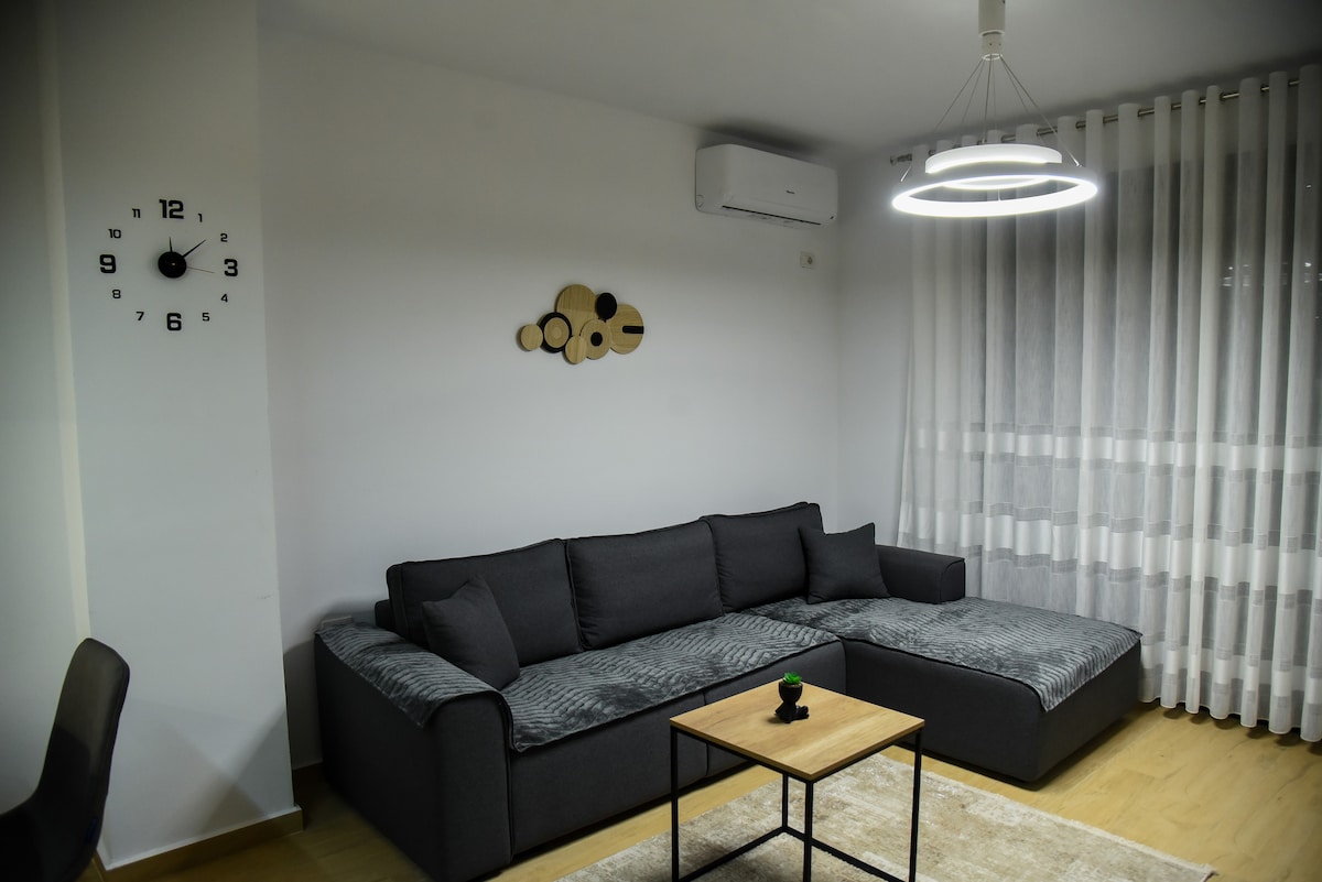 Welcome to our brand-new luxury apartment in Durres! Ideally located, it features a cozy bedroom, spacious living area with a smart TV, fully equipped kitchen, and modern bathroom. Relax on the balcony and enjoy the sea breeze. Steps from the beach, top restaurants, cafés, and nightlife. Perfect for a romantic getaway, family vacation, or business trip, with WiFi, air conditioning, and self-check-in for a seamless stay. Book now to experience the best of Durres!