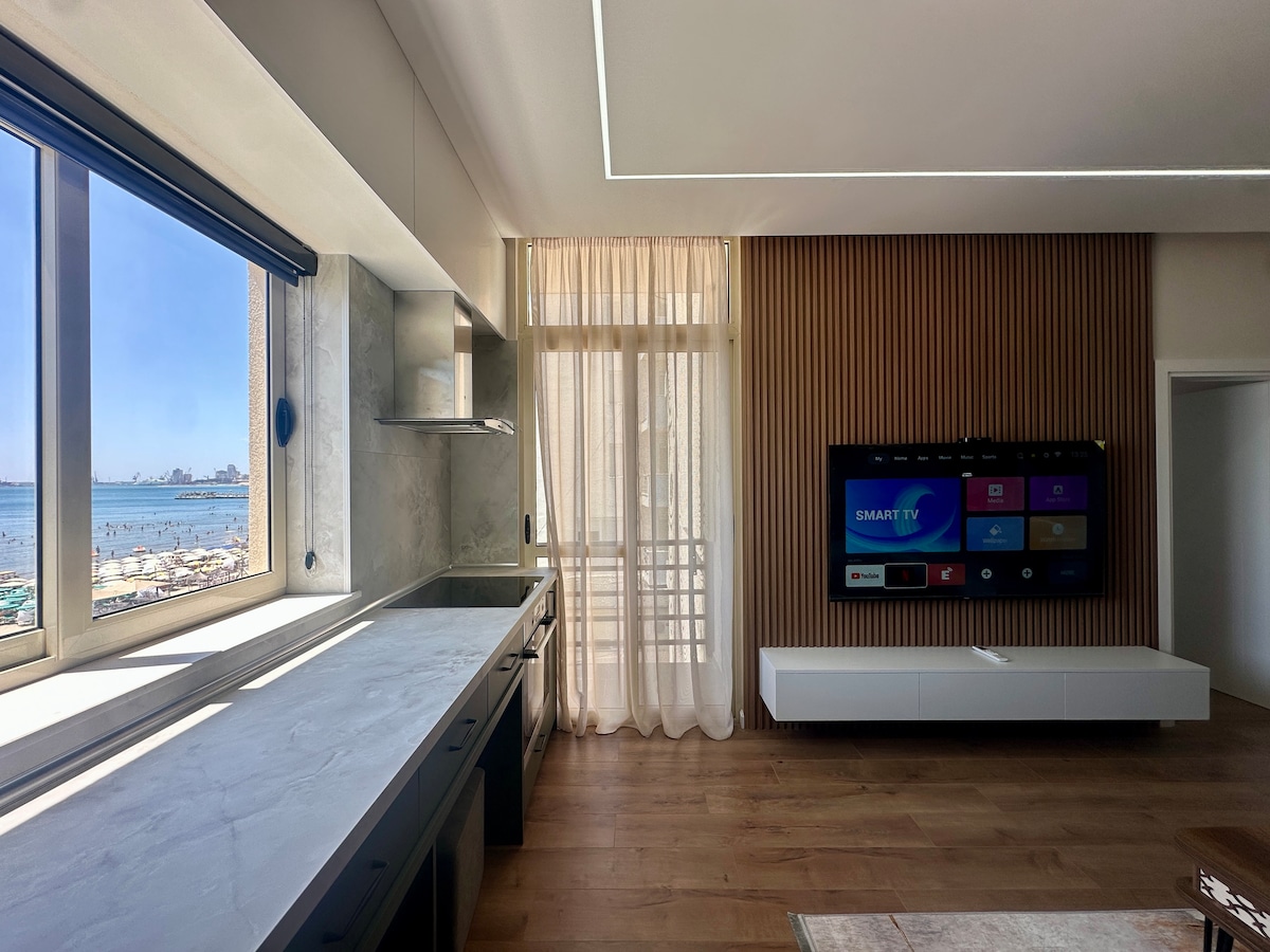 Welcome to our modern and elegant seafront apartment, designed for relaxation and comfort. This fully refurbished gem is the perfect blend of contemporary style and coastal charm. With plenty of windows and two balconies, the natural light floods the space, offering uninterrupted panoramic views of the sea.