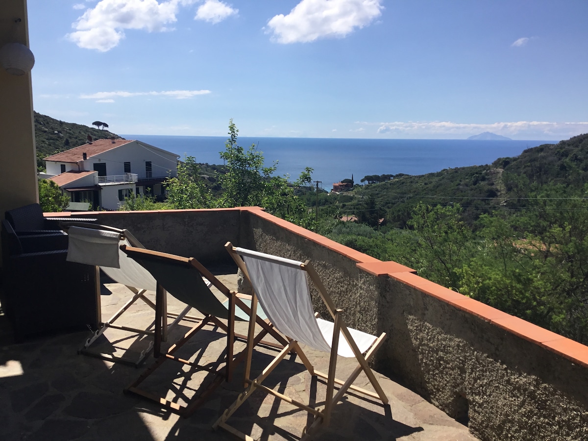 L'appartamento è sul mare e gode di una terrazza fresca e ombreggiata, con vista diretta verso il caratteristico paese di Pomonte circondato dai monti fino a digradare verso le scogliere a sinistra e la spiaggia di ghiaia a destra e il mare è leggermente visibile dal lato del terrazzo. L'appartamento è recentemente ristrutturato, composto da camera, bagno privato, soggiorno con divano letto. A disposizione: angolo cottura attrezzato, TV LCD, Wi Fi gratuito, condizionatore e riscaldamento.
