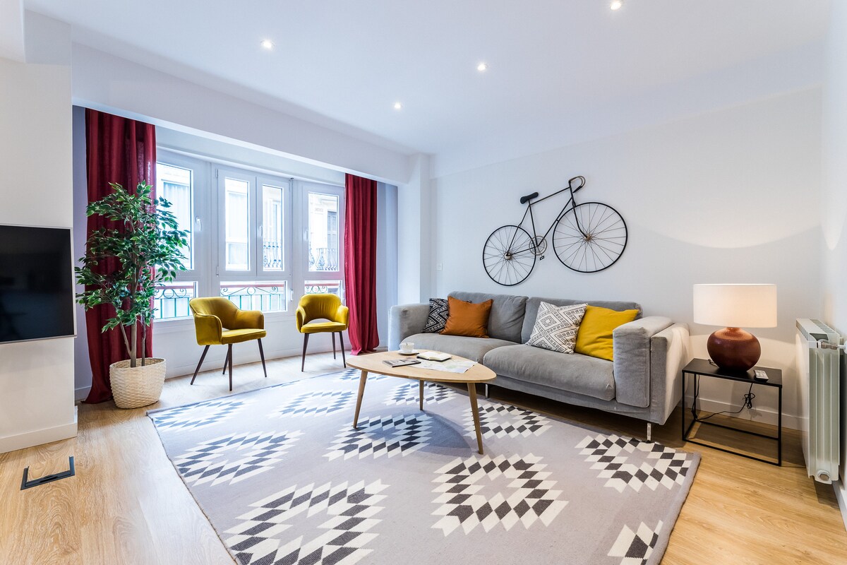 De estilo moderno y acogedor diseñado por Slow & Chic, este apartamento de un dormitorio con cama kingsize y sofá cama se encuentra ubicado en el corazón de San Sebastián, a 5 minutos a pie de la playa de la Concha.