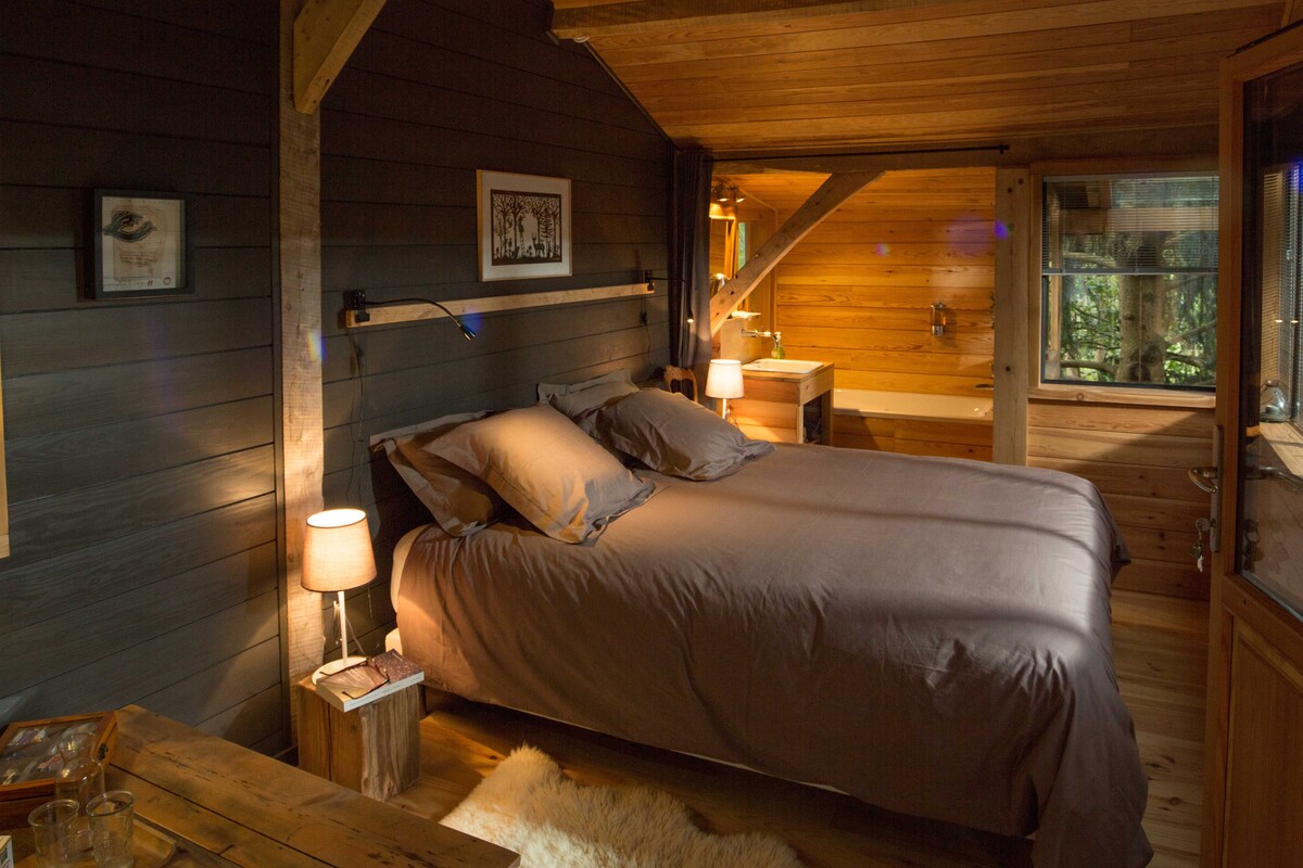 Près de la mer et de la montagne, venez vous ressourcer dans un refuge à 10 mn de Biarritz. Perchée sur pilotis à plus de 3m,entourée d'arbres dans un jardin luxuriant, la cabane est entièrement équipée pour que vous puissiez profiter d’un grand confort en pleine nature. La cuisine d'été toute équipée est sous la cabane .Vous vous réveillerez au chant des oiseaux. OPTION: payable sur place (pas de CB): Bain nordique 40€ (ou 50€ avec 2 peignoirs) . Petit déjeuner simple autonome compris .