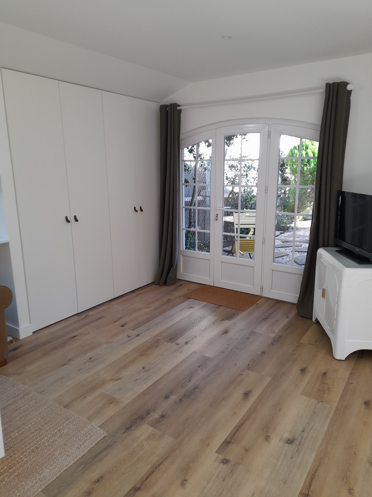 Located in the garden of my home, you access through the garden to this pretty house, 19 m2, in a green setting, with a private furnished terrace, sunny and in complete privacy. It's just one room, it's small, cozy, comfortable and functional, everything is there! Murphy bed, bathroom with walk-in shower and toilet. Reversible air conditioning. Rolling shutters on all windows. In the fridge and cupboards you will find breakfast and basic products