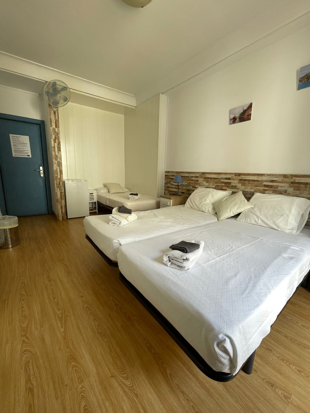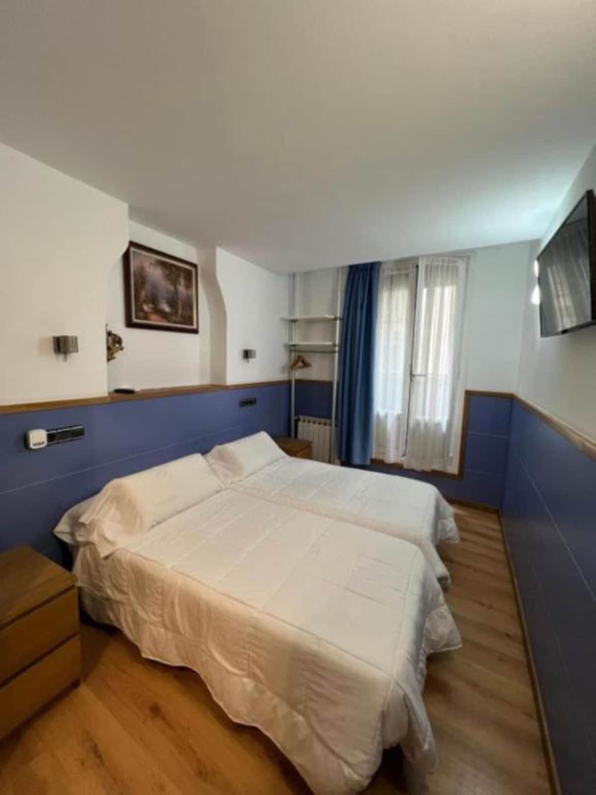 Ubicada en nuestra pensión familiar, entre la calle Mayor y la calle Aldamar y a solo dos minutos a pie de la playa, esta habitación es perfecta para grupos de amigos, familias o viajeros que buscan comodidad y buena ubicación. Dispone de tres camas individuales y un baño privado completo, ideal para descansar tras un día explorando el encanto de Getaria y sus alrededores.