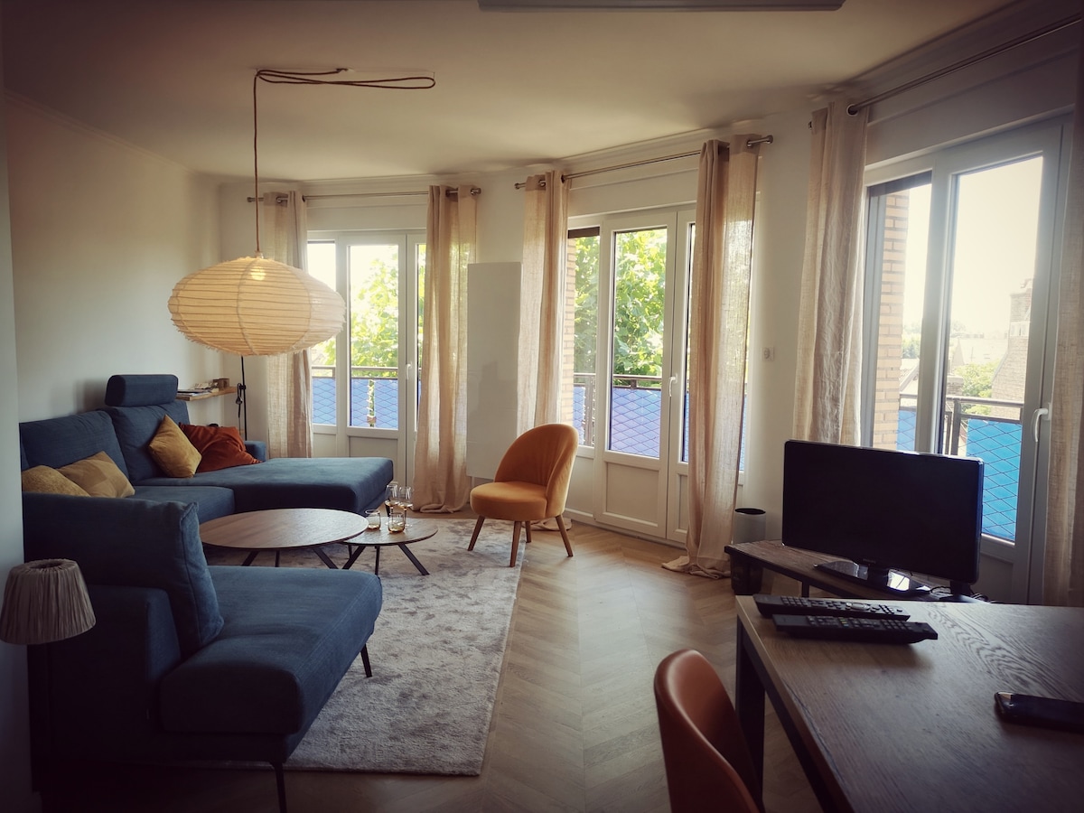 Très bel appartement situé à 2 pas de la place turenne, de la plage, du kursaal et des commerces Très lumineux et spacieux Une chambre parentale et une chambre pour 2 enfants ( il est possible de rassembler les 2 lits pour en faire un lit double ) Salon et salle à manger spacieuse