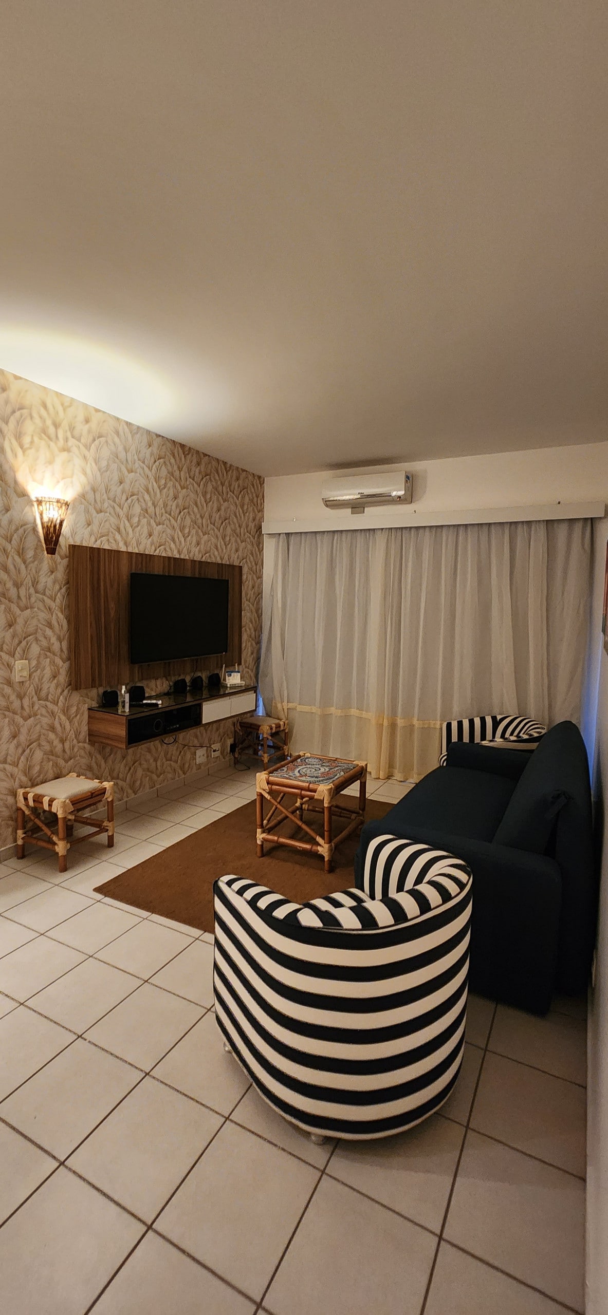 Apartamento mobiliado de dois quartos, sendo uma suíte, dois banheiros, sala, cozinha e varanda no Wellness Resort. Na suíte, temos uma cama casal queen e no quarto temos duas camas de solteiro. Tem ainda um sofá-cama na sala. O Wellness Resort fica à frente do maior e melhor parque aquático Beach Park. Além de camas e sofá-cama, temos TV rede a cabo e ar condicionado nos quartos e na sala. Disponibilizamos ainda internet Wi-Fi para nossos convidados.
