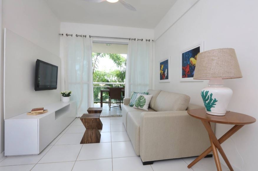 Comfortable apartment at Suites Beach Park Resort (GROUND FLOOR), with the best location within the condominium (facing the ocean and pools). It is the closest condominium to Beach Park. - 2 air conditioners - Smart TVs in all rooms. - Free hotel broadband internet - Kitchen with: sandwich maker, microwave, single-burner induction stove, air fryer, blender, beer cooler, and general utensils. - SMOKING is prohibited in the apartment, and unfortunately, the resort does not accept pets.