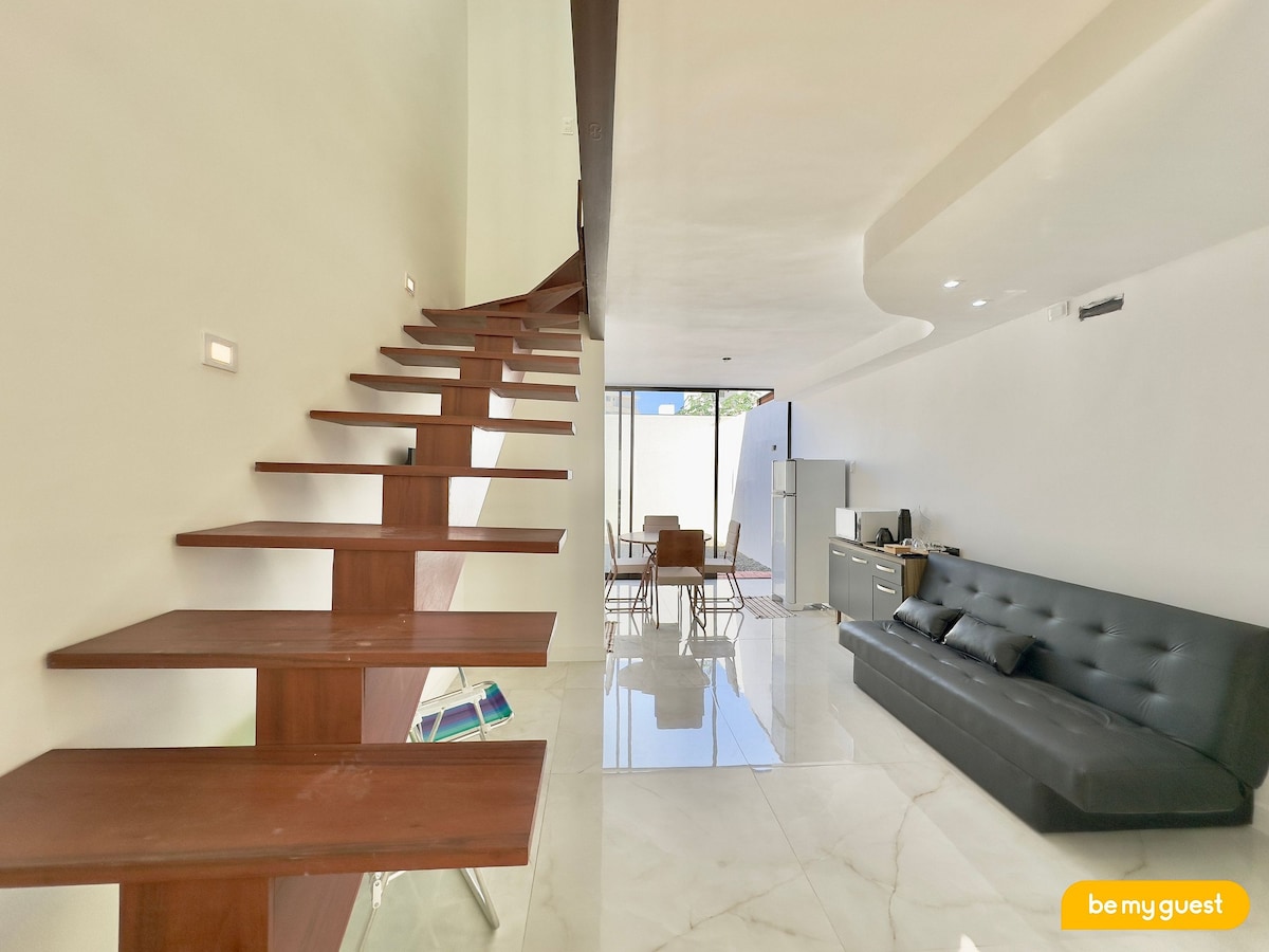 O "apebambu" traz para o casal uma experiência relaxante , conforto e estilo diferenciado, bem próximo a praia em um condomínio tranquilo a 150 m do BEACH PARK. Estúdio mobiliado com cama de casal , fogão, airfrier, sanduicheira , geladeira , ar condicionado , chuveiro quente, garagem e piscina. Tudo para uma experiência relaxante e de tranquilidade que você precisa. Somos PETFRIENDLY , para animais de pequeno porte , limitação de espaço físico.