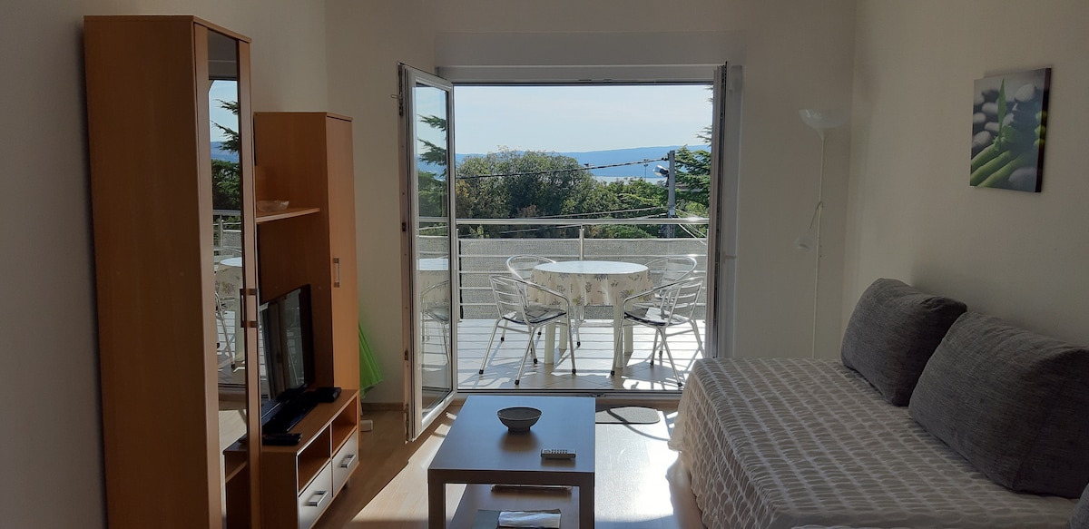 Apartman u Crikvenici, sa predivnim pogledom na more, udaljen je 200 m od prvih plaža te 50 m od prvog dućana te 500 m od Špar trgovine. Apartman je idealan za parove ili parove sa dijetetom. Uz apartman imate siguran i privatan parking, klimu uređaj te pravo na upotrebu grill roštilja i vanjskog tuša. Apartman ima balkon sa predivnim pogledom na more. Centar Crikvenice je udaljen 3 minute autom ili 20 minuta pješke. Bliži centar Selce je udaljen 10 minuta pješke ili 2 minute autom.