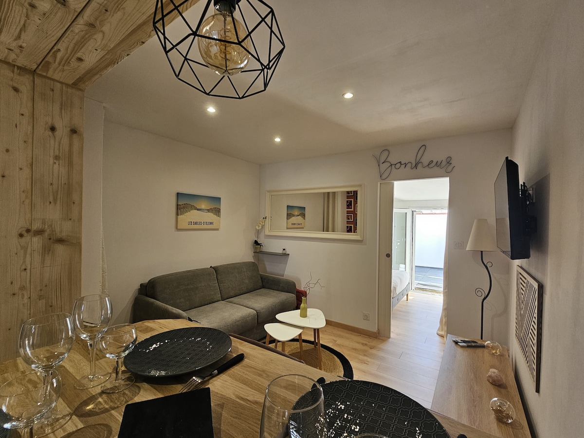 The advantages of this very bright 3*** apartment of 35 m²: - ideally located in the heart of the typical Quartier du Passage, 1 minute from the beach! - new bedding in 2024 Queen Size 160x200! - 1 separate bedroom - sheets and towels included - no additional or hidden costs to add: many of our facilities are available to you free of charge (travel cot, high chairs, beach toys, market carts, etc.) - baggage drop-off possible from 2 p.m. (see details in the announcement)