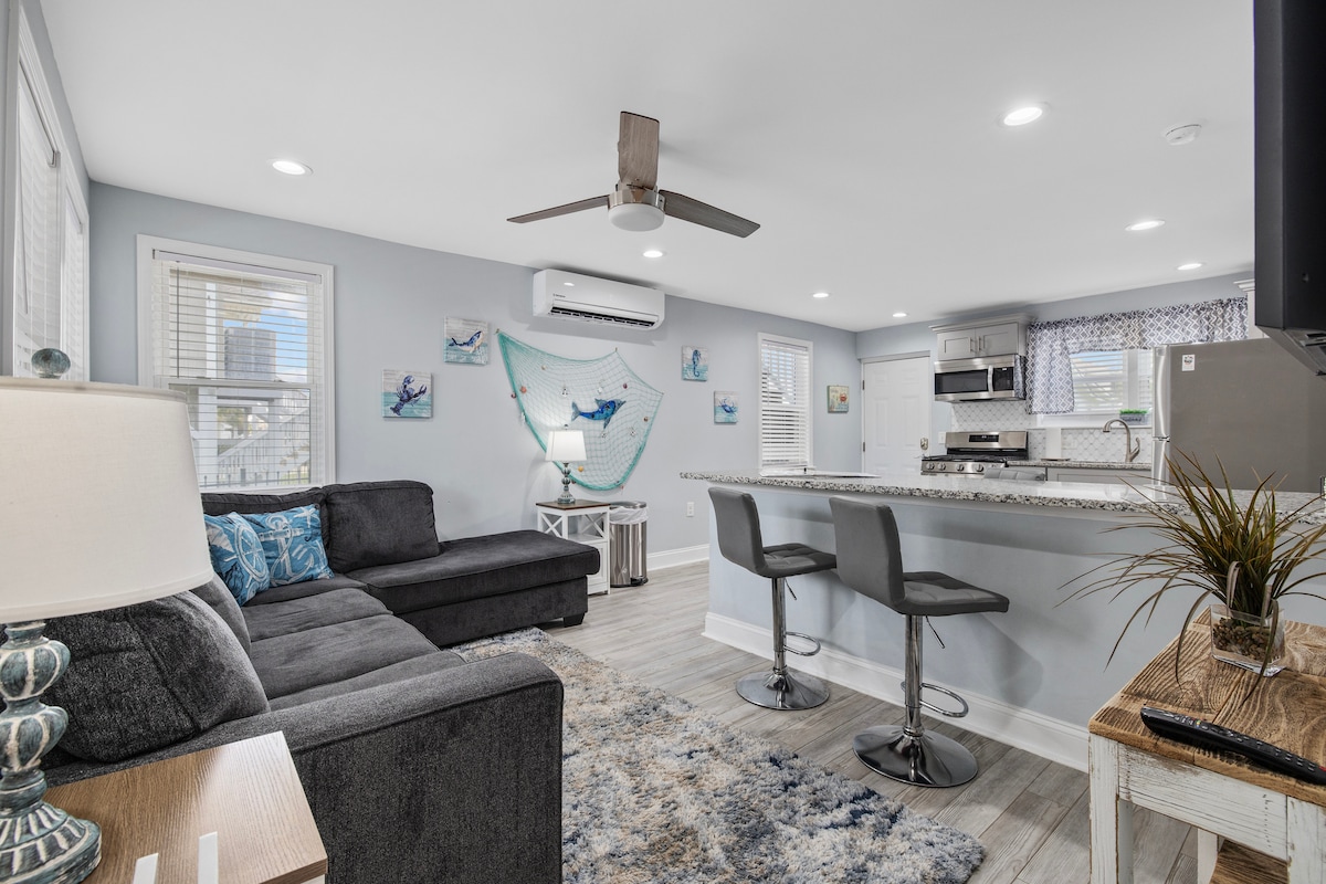 The Sanctuary: Haven sleeps 8 and is your perfect coastal escape just 1 block from North Myrtle Beach. This stylish 2-bed, 2-bath features a spacious living area, full kitchen, free Wi-Fi, private parking, and easy beach access. Explore Barefoot Landing, Alabama Theater, and more nearby. Want to explore in style? Guests can rent our Tesla Model Y—delivered and ready. Just ask! Family-friendly, smoke-free, and minutes from golf, dining, and adventure—designed for comfort + connection.
