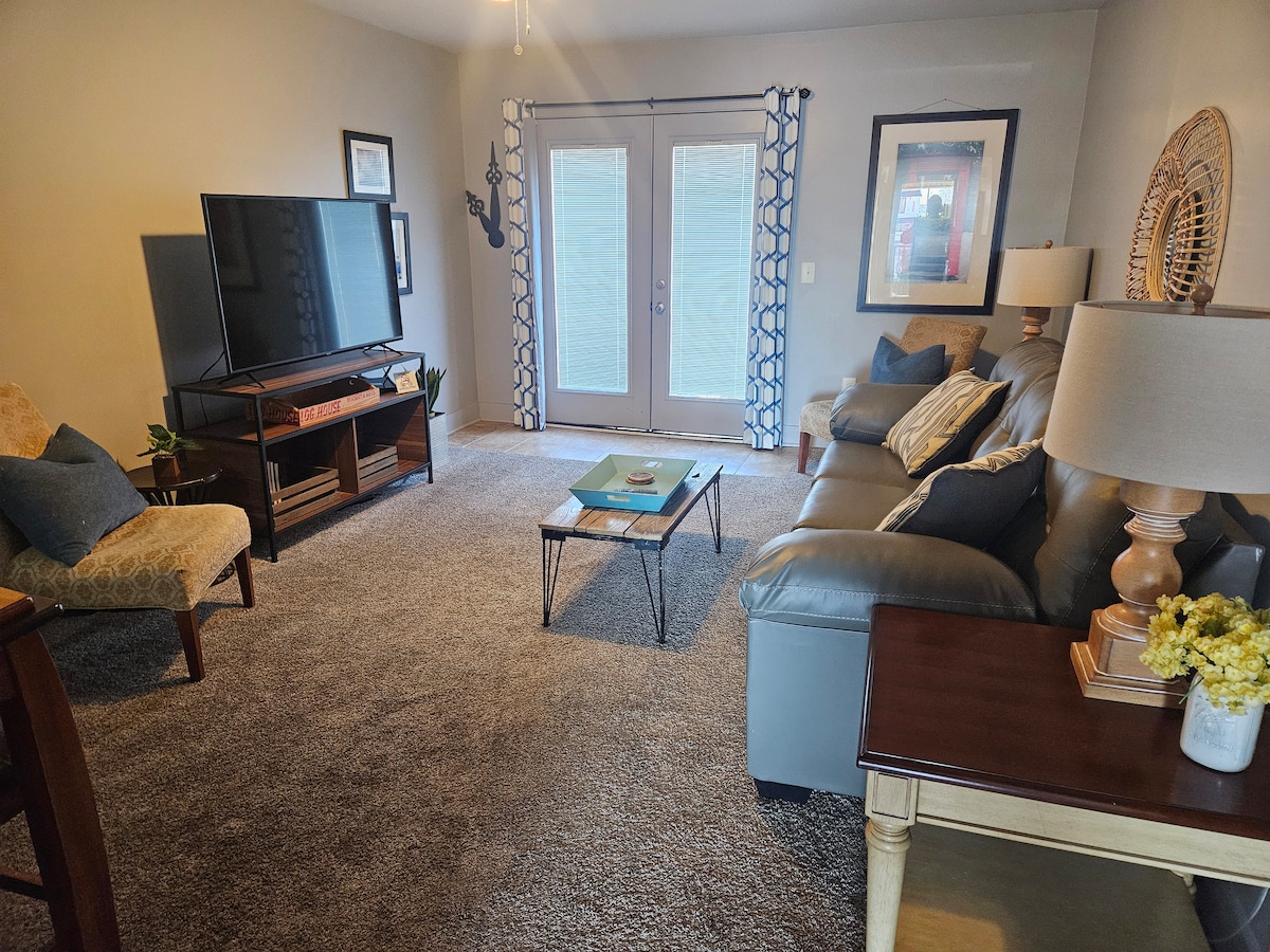 Kick back and relax in this calm, stylish space. With 2 living rooms & an outdoor living area, there will be plenty of space for you to spread out and get comfy. New 65" Smart TV & long comfy couch - perfect for movie nights with the whole group! Local Attractions- 5 miles from Downtown Clarksville (~10min) 15 miles from Fort Campbell (~30min) 45 miles from Downtown Nashville (~45min)