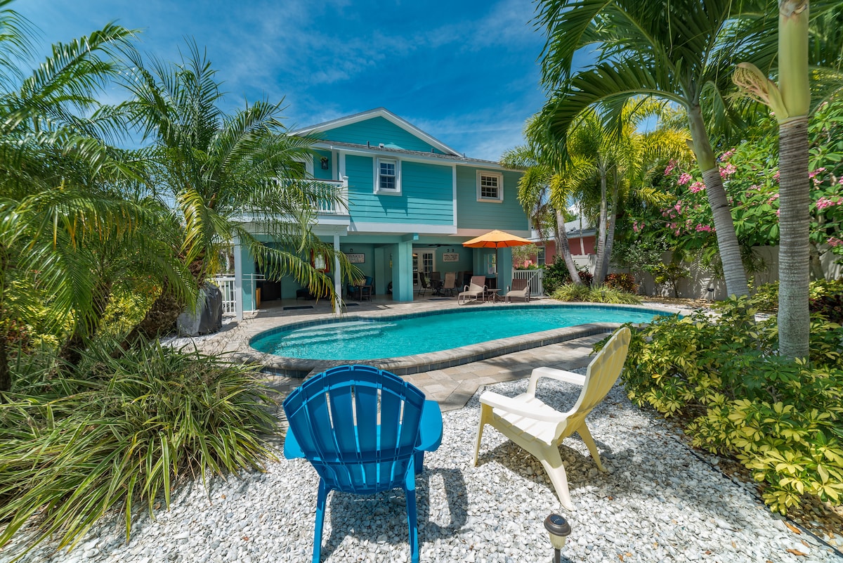 Adorable beach cottage on the north end of Anna Maria Island! The beach access trail to the beautiful beach is right by the house. This 3 bedroom 2 bathroom home is situated on a corner lot on a quiet street and is located just steps to the beaches of the Gulf of Mexico. Enjoy the private pool and hot tub, surrounded by tropical landscaping. Tons of beach gear included! It is located in a great area to explore by bike, ride to Pine Ave., Bayfront Park, the Rod & Reel Pier, etc....