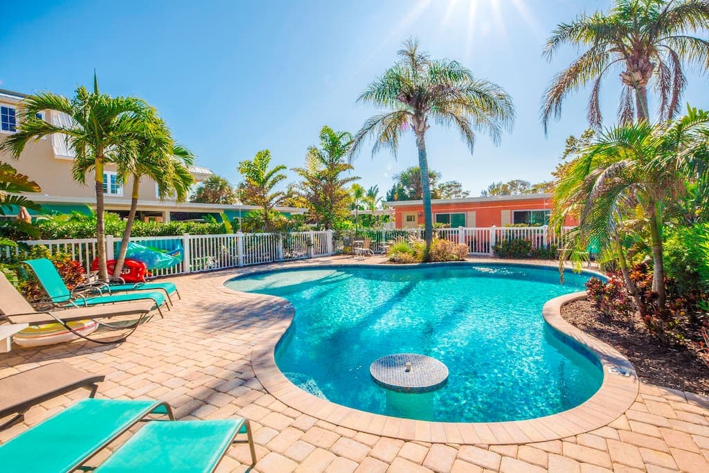 Experience life 4 blocks from the Gulf, ½ mile to Siesta Key — America’s #1 Beach. With effortless access to Sarasota’s dining & arts scene, Siesta’s white sand beaches, St. Armand’s, & Gulf Coast adventure! 2BR boutique bungalow • Sleeps 6 • 4 beds Situated in the coveted Coastal District (‘West of Trail’) — chef kitchen, beach gear, Smart TVs, marble spa bath, laundry, fast Wi-Fi. Grill lobster under stars, unwind in your tropical garden, & walk palm lanes to cafes, and waterfront sunsets.
